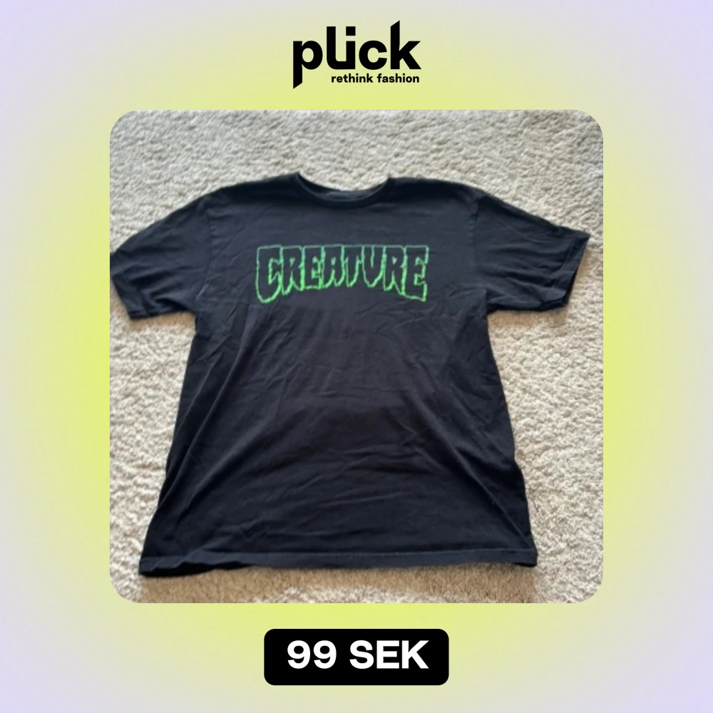 Creature skateboard t-shirt med tryck fram. Trycket är lite lite urtvättat.