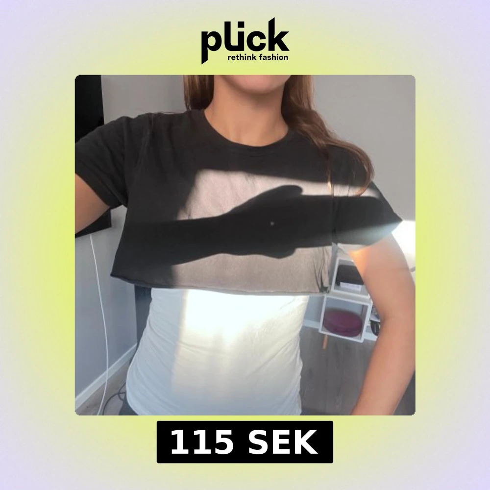 Svart croppad t-shirt som slutar ish efter brösten så ja rekommenderar linne under❤️ strl 160