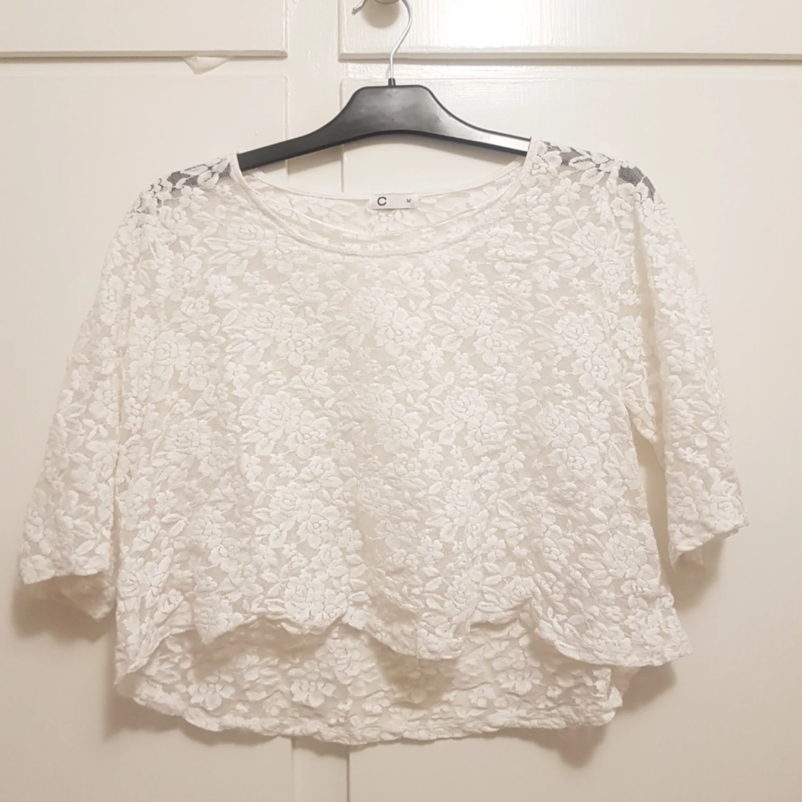 Vit spets tröja i fint använt skick. Storlek M Inköpt på Cubus