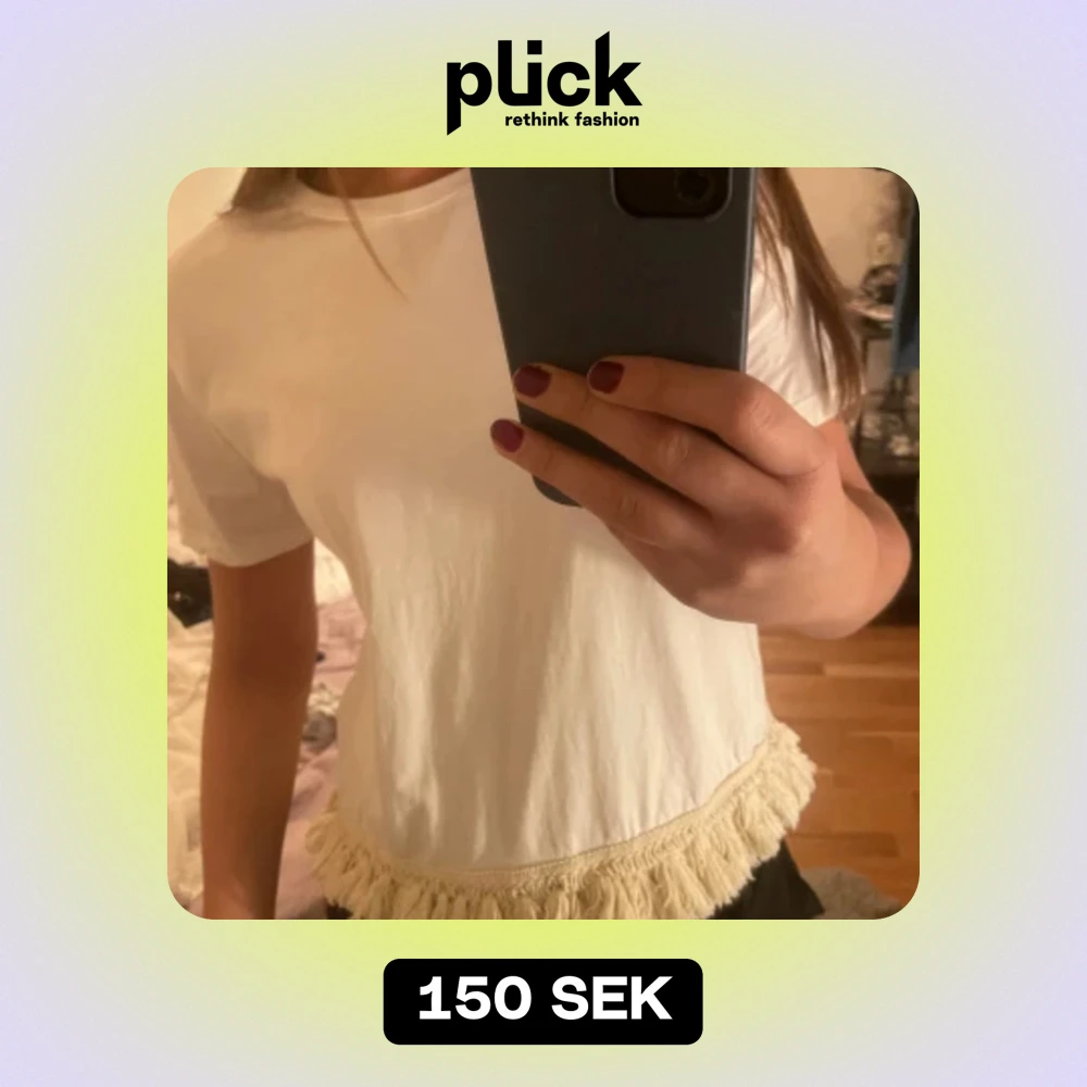 Så så gullig t-shirt med fransar!!! Den är i storlek M men passar lika bra på S. Den är så så fin till sommaren och våren!!! Skicka prisförslag och tveka inte om att fårga om ni undrar något💗