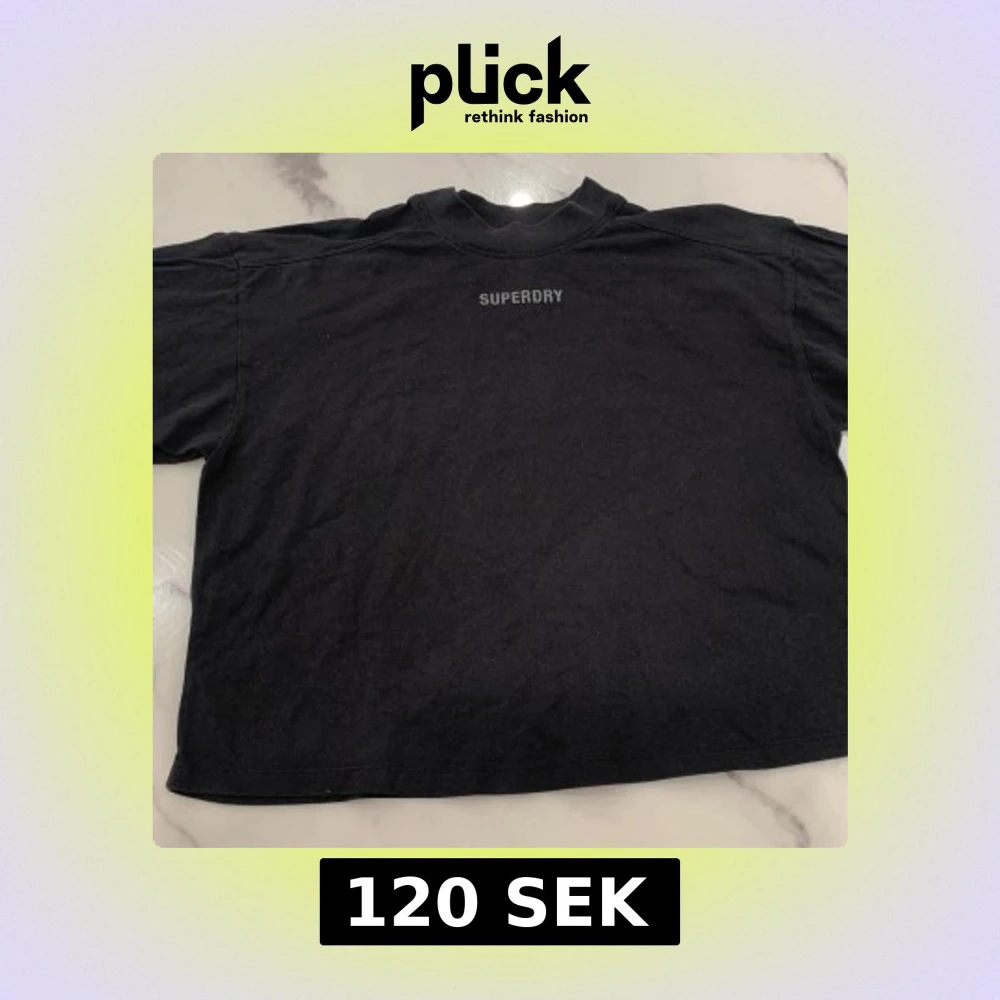 Säljer en svart t-shirt från Superdry med korta ärmar och rund hals. T-shirten har en enkel design med Superdry-loggan tryckt på bröstet. Perfekt för en avslappnad stil.