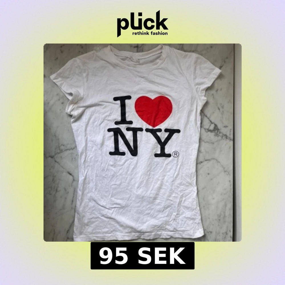 Säljer en klassisk vit t-shirt med det ikoniska I ❤️ NY-trycket i svart och rött. T-shirten har en rund hals och korta ärmar, perfekt för en avslappnad stil. Ett måste för alla som älskar New York! Storlek ca S