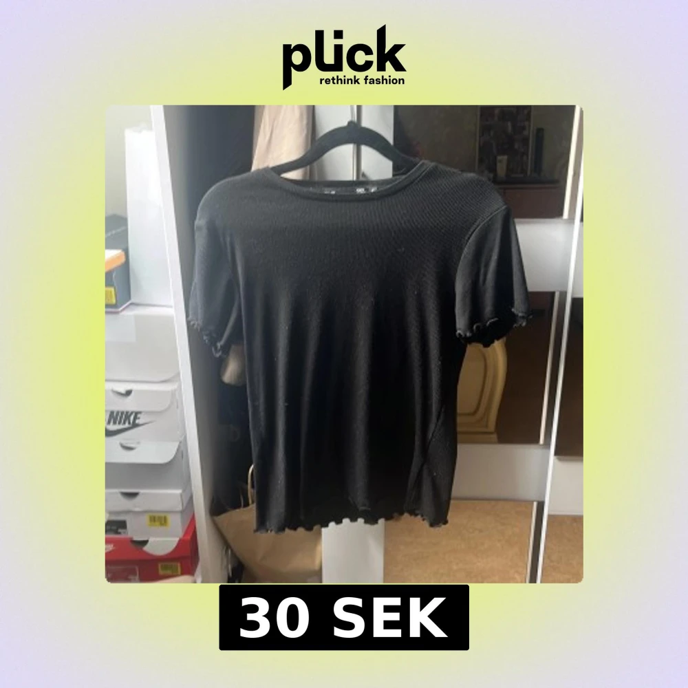 Svart ribbad t-shirt från 157 med tight passform. T-shirten har korta ärmar och vågiga kanter vid ärmslut och nederkant för en extra detalj. Perfekt för en stilren och enkel look.