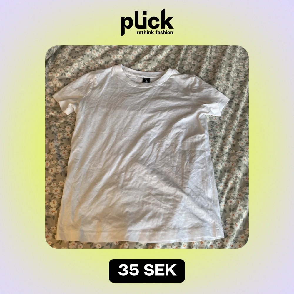 Säljer en klassisk vit t-shirt från Pilago i storlek S. Den är i bomull och har en normal passform med korta ärmar. Perfekt basplagg för alla tillfällen!