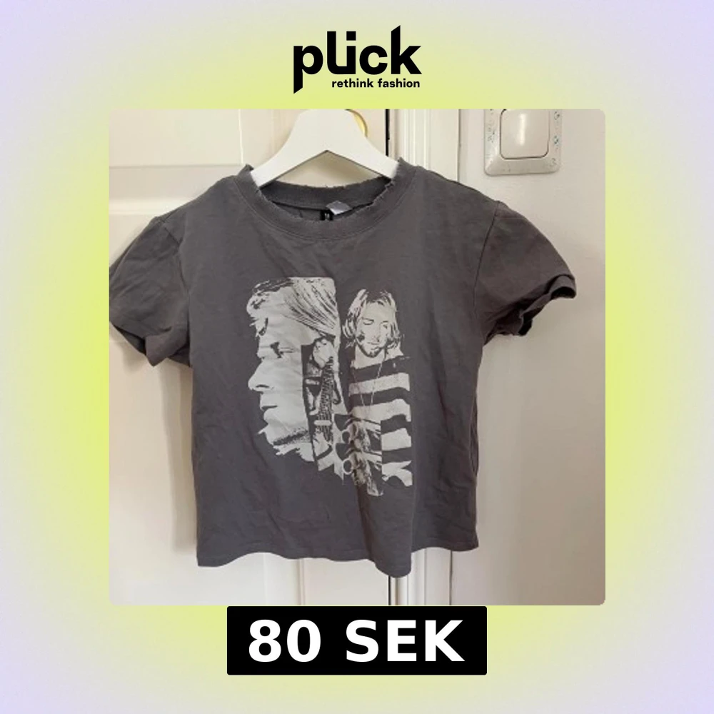 Säljer en grå t-shirt från H&M Divided med ett coolt tryck av två ansikten i vitt. T-shirten har en rund hals och korta ärmar, perfekt för en avslappnad stil. Passar bra till jeans eller shorts för en casual look.