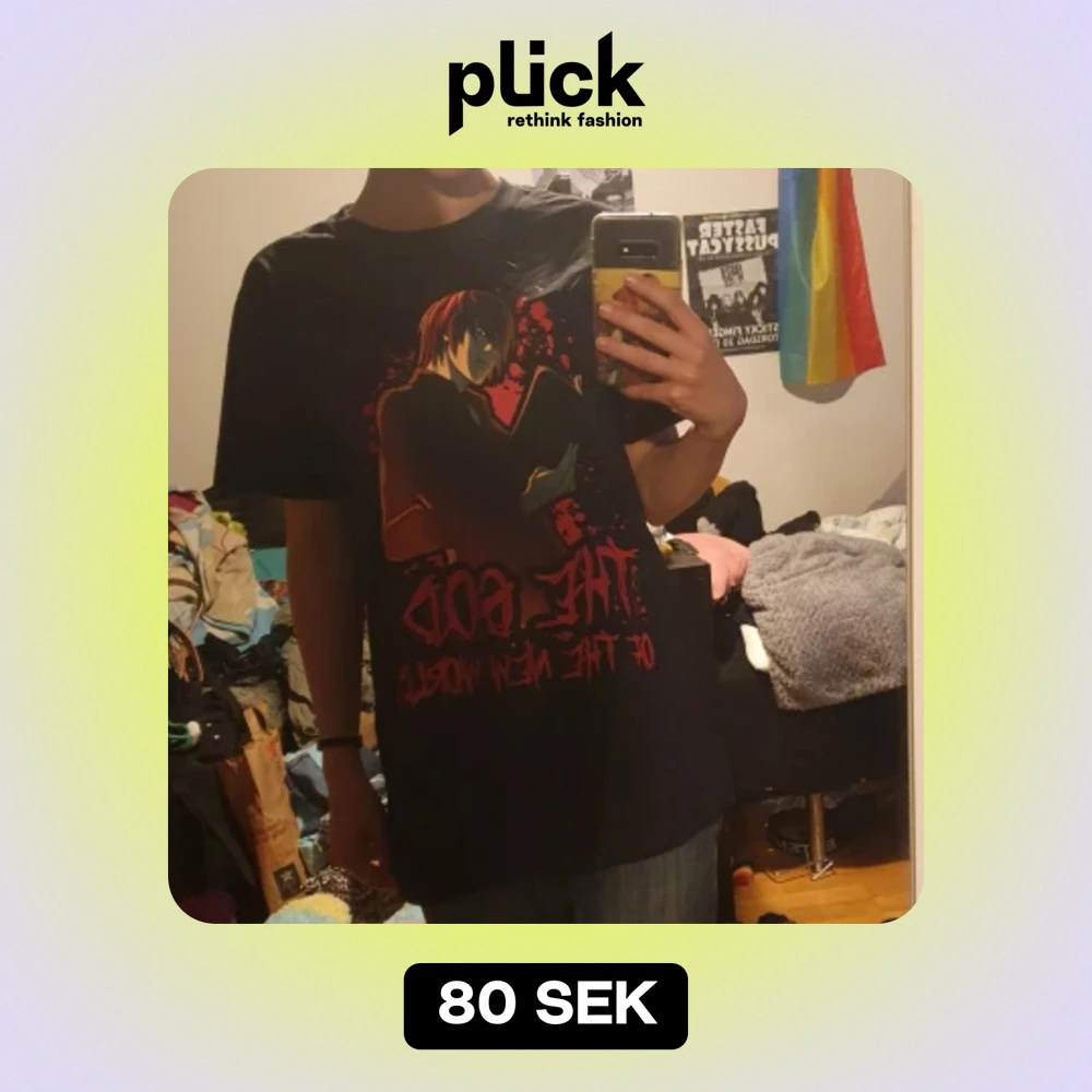 Deathnote t-shirt med Light Yagami som tryck. Aldrig använd och i mycket bra skick. Ursprungligen köpt från Fruit of the Loom. Storlek S men passar troligtvis en M.