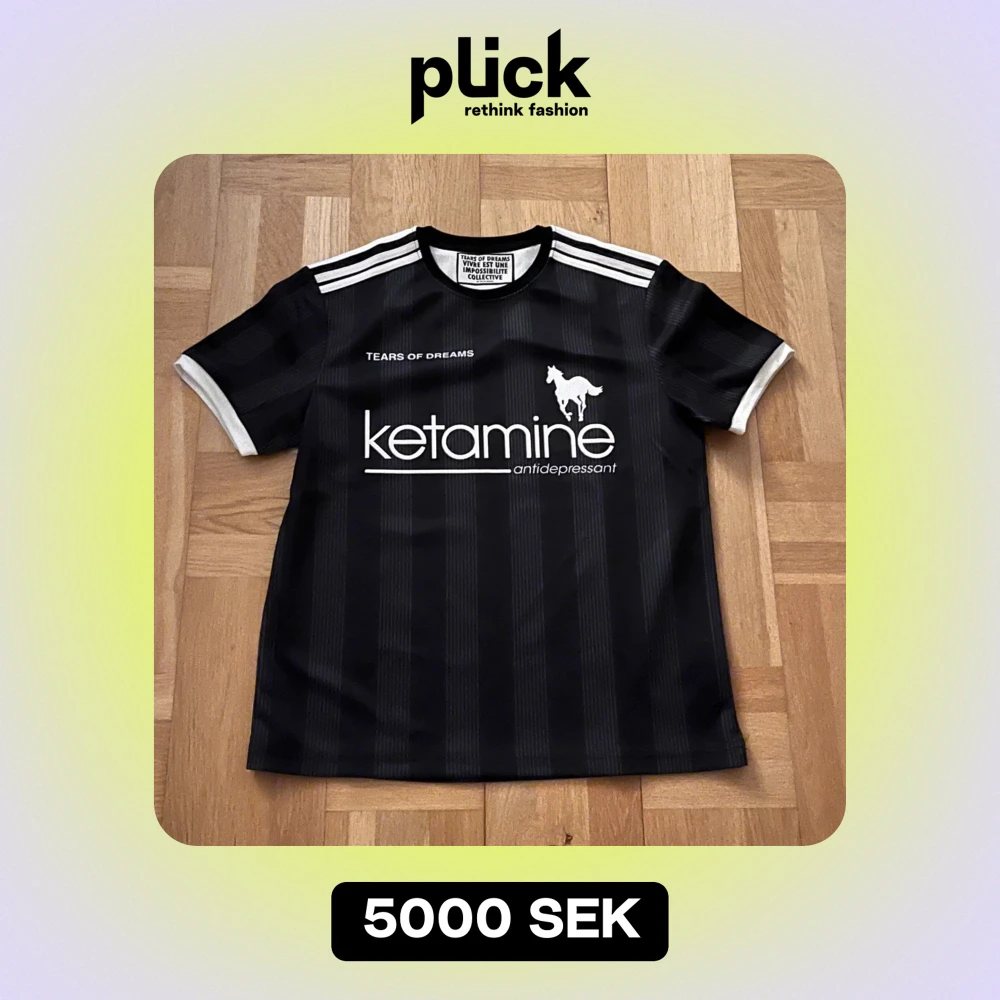 limited svart fotbollströja från Tears of Dreams. Den har texten 'ketamine antidepressant' på framsidan och 'DREAMER 00' på baksidan. Sjuk grail så missa inte. Säljer endast för jag vill åka utomlands 🇪🇸(storlek S men kan passera som M) INTE FAST PRIS!