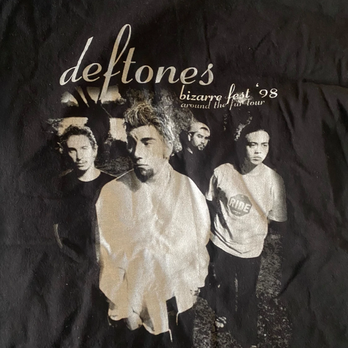 Svart t-shirt med Deftones tryck från Bizarre Fest. Storlek s och perfekt skick bara använd någon enstaka gång. Köpt för 350kr säljes för 150kr