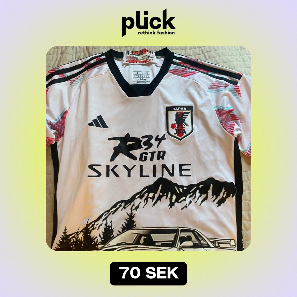 Tryckt Japan fotbollströjan från en uk hemsida som designar fotbollströjor. Det står att det är adidas och har brodyr, men är inte säker på om den är äkta. Använt en gång kanske och är i bra skick.