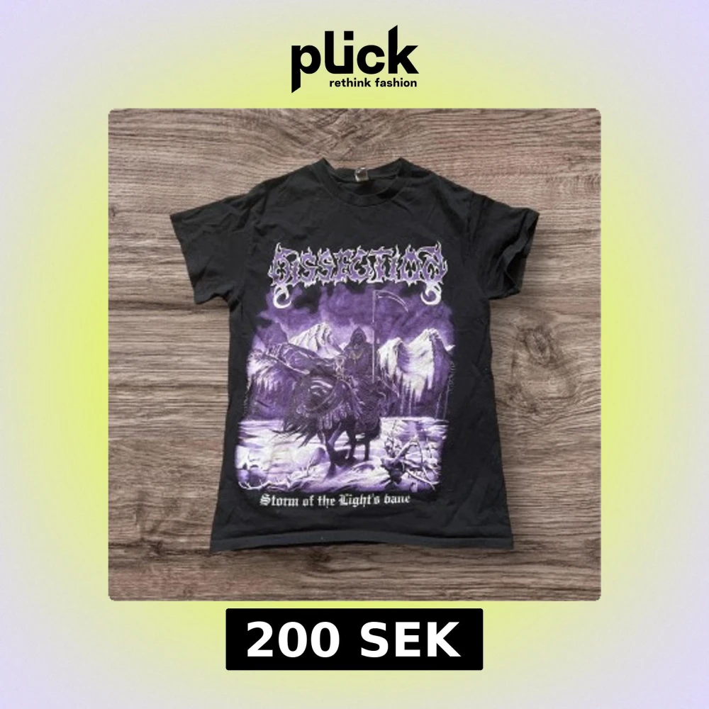 Säljer en svart band-tshirt från Gildan med stort tryck av bandet Dissection och motiv på framsidan samt text och symbol på baksidan. Säljer då jag är i behov av pengar.