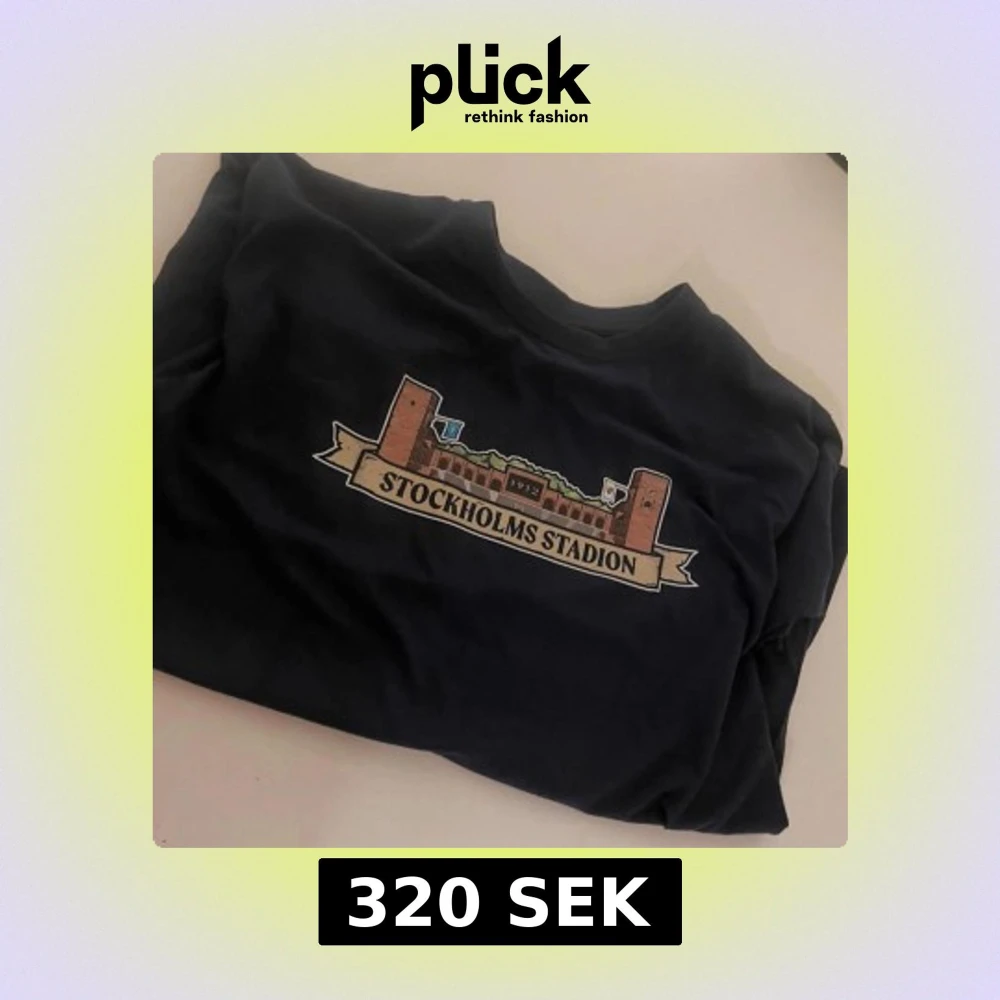 Svart t-shirt med tryck av Stockholms Stadion och texten '1912'. Klassisk rund hals och korta ärmar. Perfekt för dig som gillar sport eller vill ha en unik t-shirt med coolt motiv.