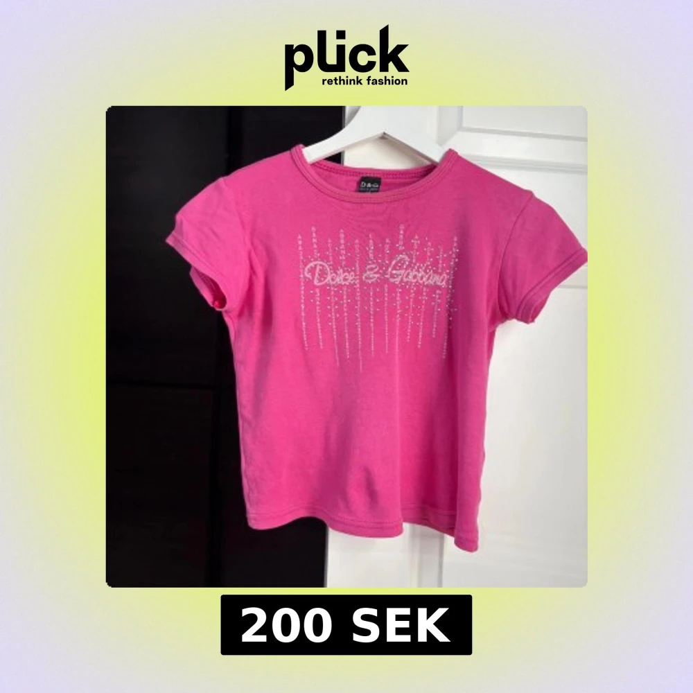 Snygg rosa t-shirt från Dolce & Gabbana med korta ärmar och glittrande strassdetaljer framtill. Inte säker på om den är äkta.