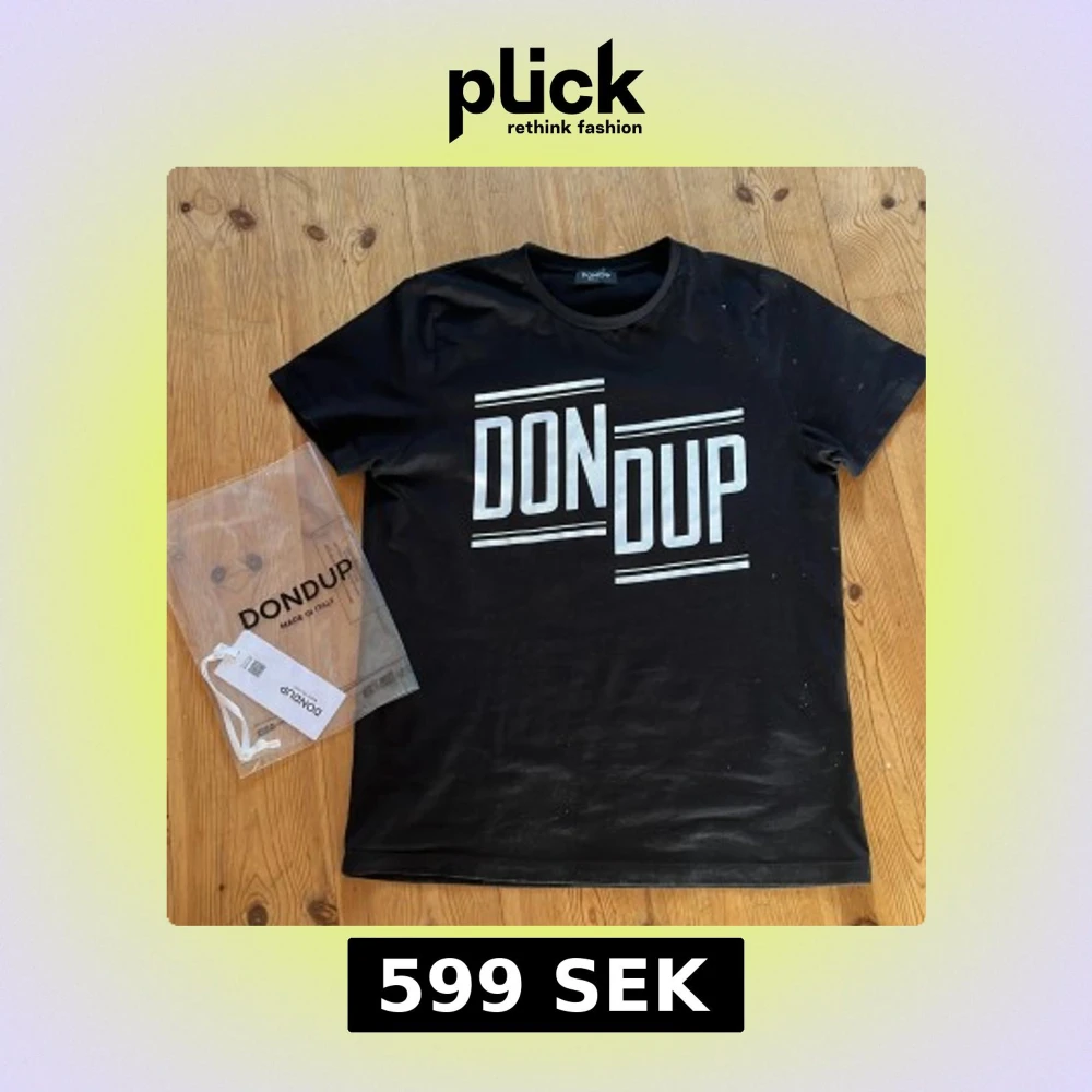 Säljer en svart t-shirt från Dondup med stort vitt tryck på framsidan. T-shirten har en klassisk rund hals och korta ärmar. Perfekt för en stilren och avslappnad look.Nästan aldrig använd och har inga defekter och är storlek s. Va inte rädd att fråga svarar på allt!