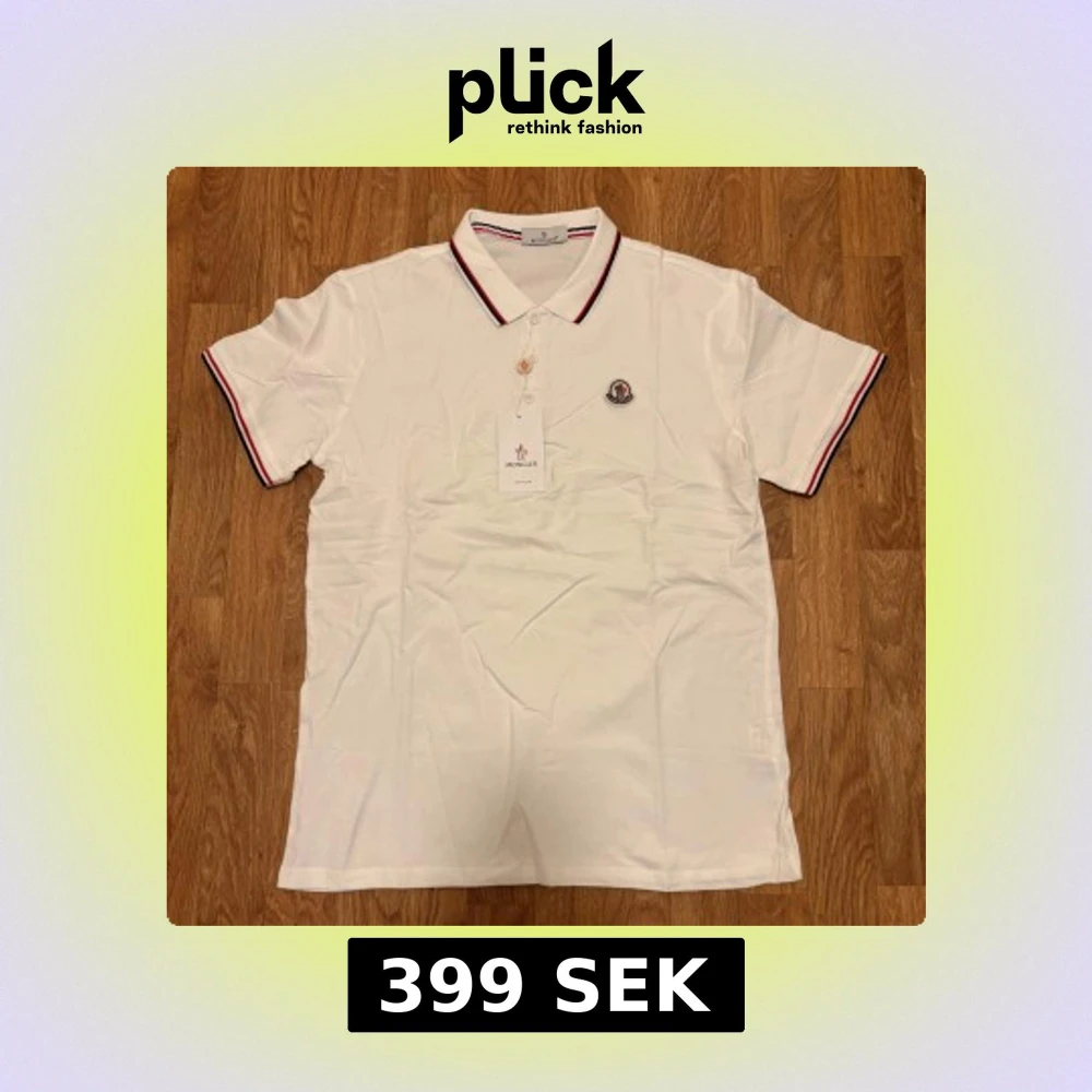 Vit Moncler pikétröja med ränder