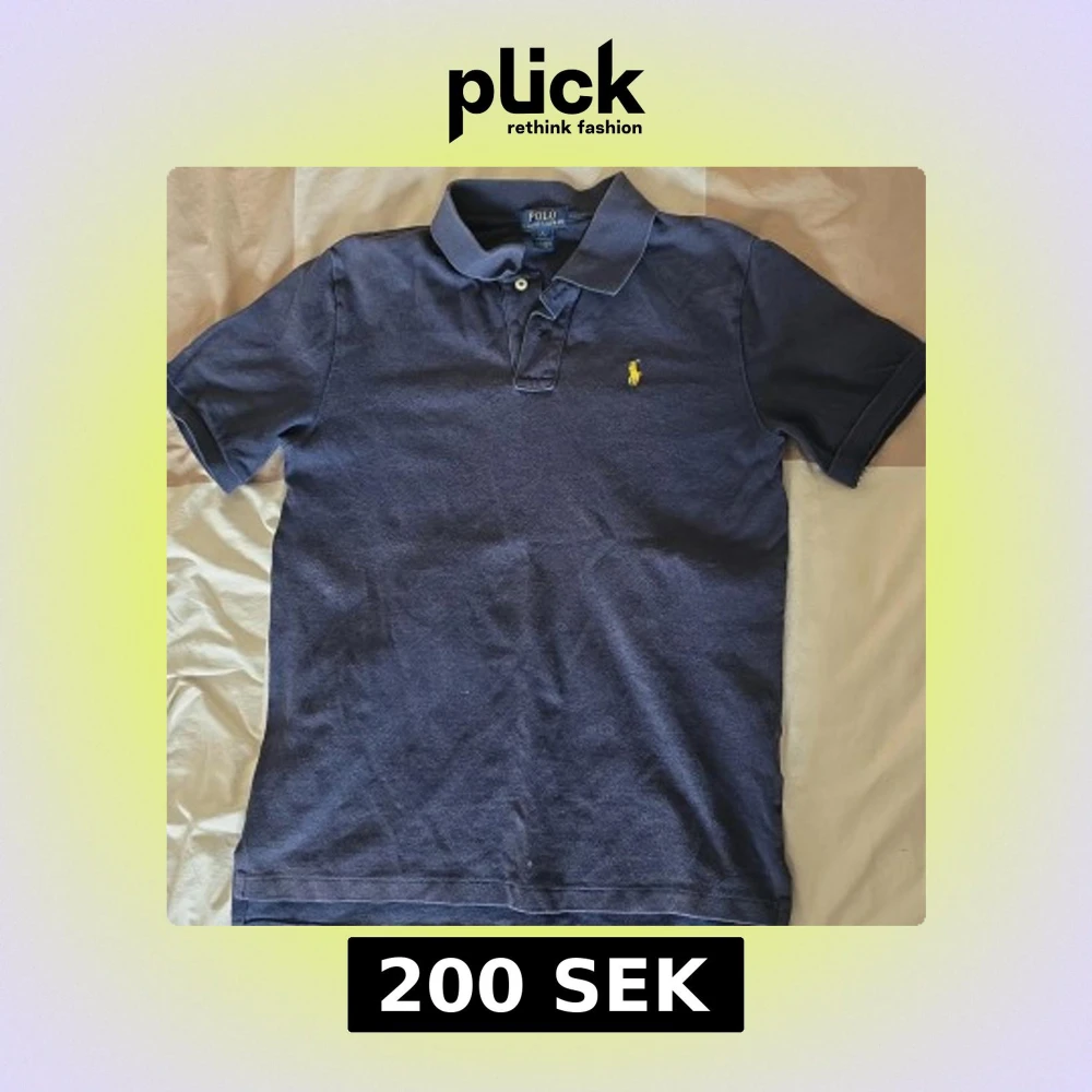 Säljer en klassisk mörkblå pikétröja från Ralph Lauren med den ikoniska broderade loggan i gult på bröstet. Tröjan har korta ärmar och en stilren krage med knappar. Perfekt för en avslappnad men stilren look.