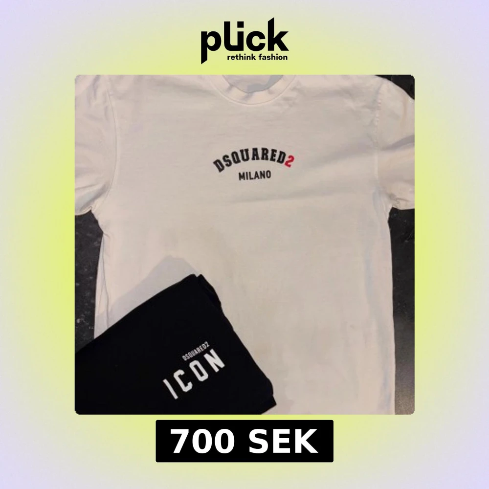 Vit T-shirt och svarta shorts från Dsquared2 med vit 'ICON'-logga på ena benet. De har elastisk midja med snörning och fickor både fram och bak. Sköna och stilrena, perfekta för chill dagar eller när du vill ha en clean look. Materialet känns mjukt och är 100% bomull. Tshirt är storlek L och shortsen är XL