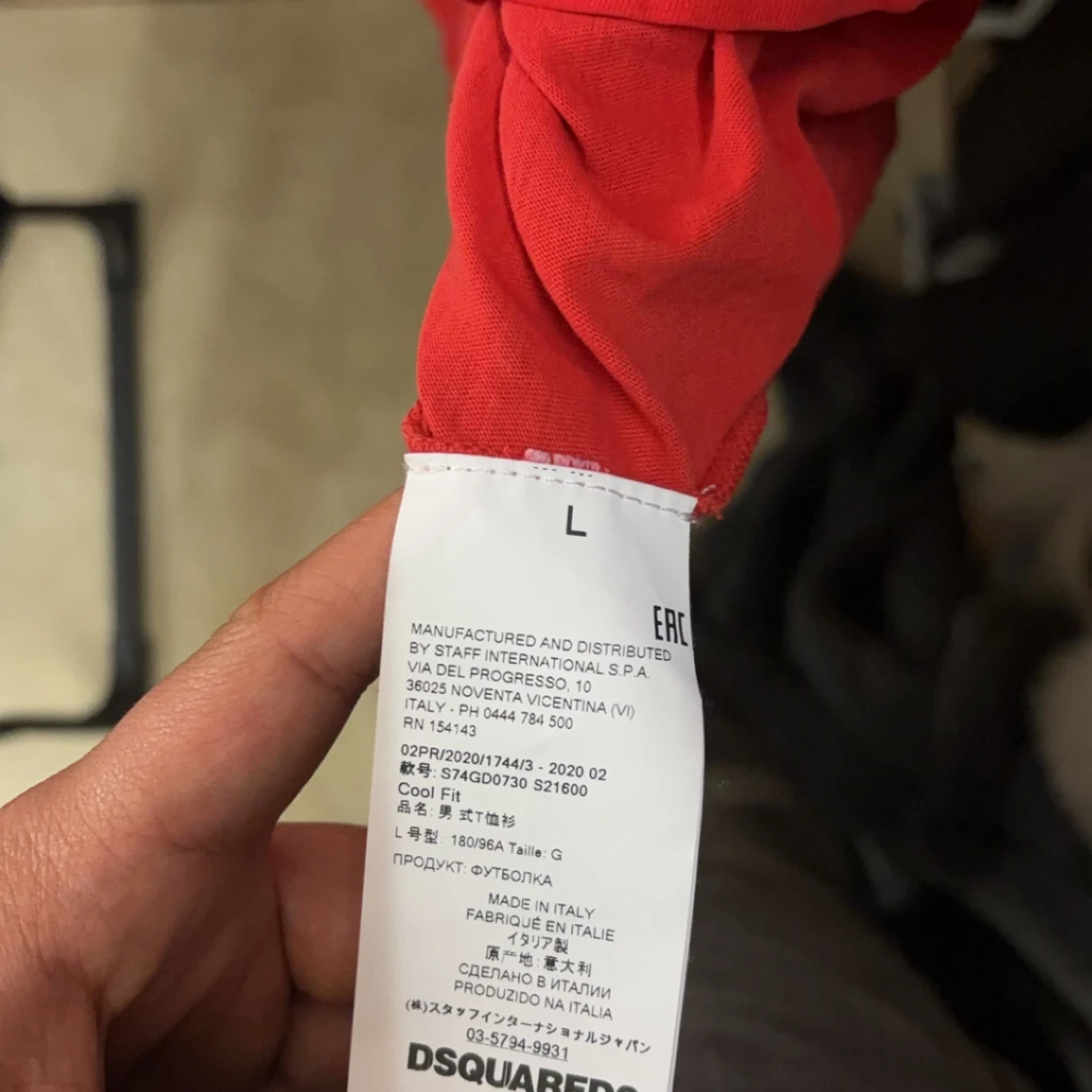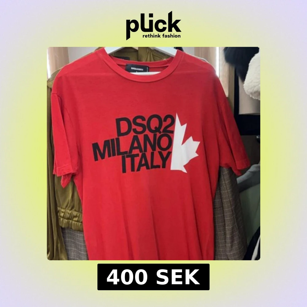 Snygg röd t-shirt från DSQUARED2 med svart tryck 'DSQ2 MILANO ITALY' och en vit lönnlövsgrafik på framsidan. Klassisk rund hals och korta ärmar. Tillverkad i mjuk bomull, perfekt för dig som gillar streetwear med statement. Äkta!