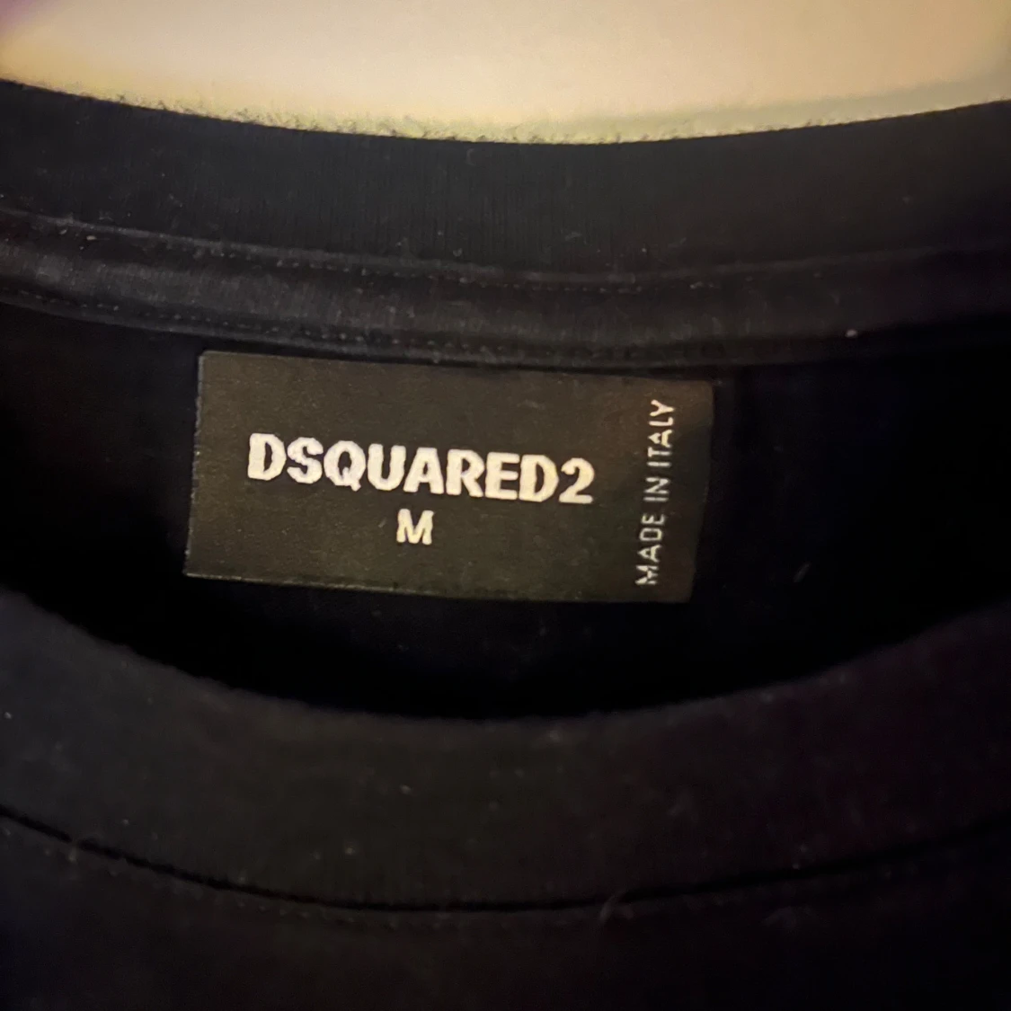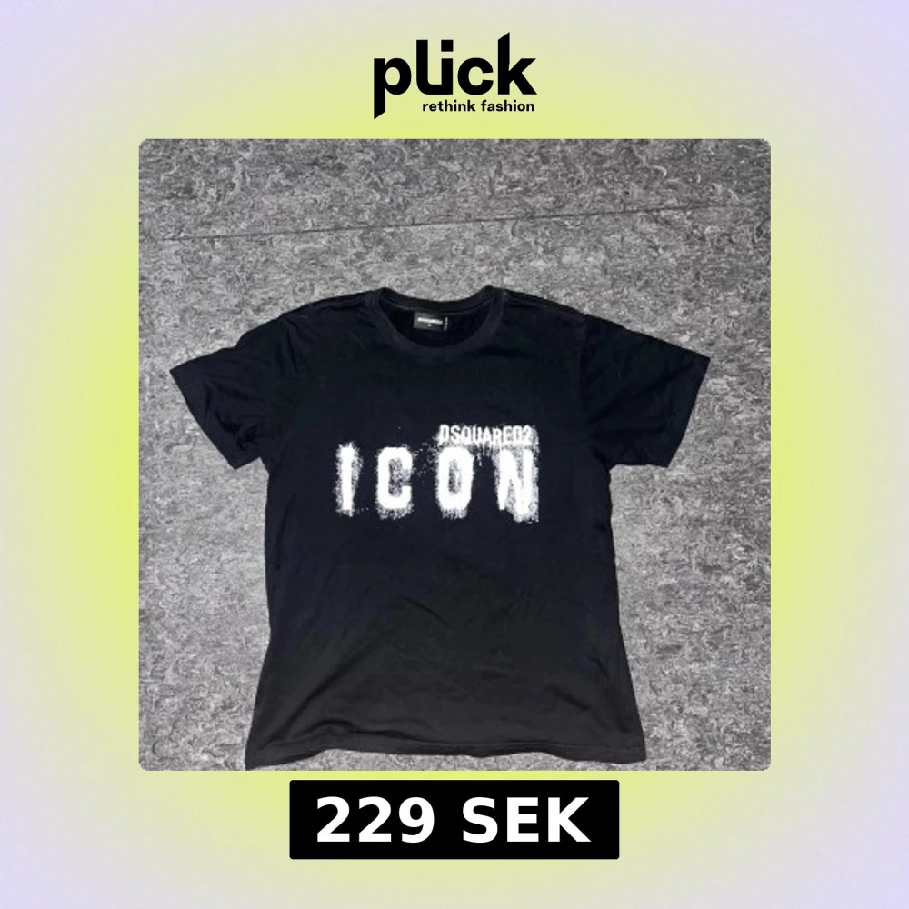 Svart t-shirt från Dsquared2 i storlek M med stor vit 'ICON'-text framtill. Klassisk rund hals och korta ärmar. Tillverkad i mjuk bomull för en skön känsla. Snygg och stilren design med streetkänsla. Aldrig använd.