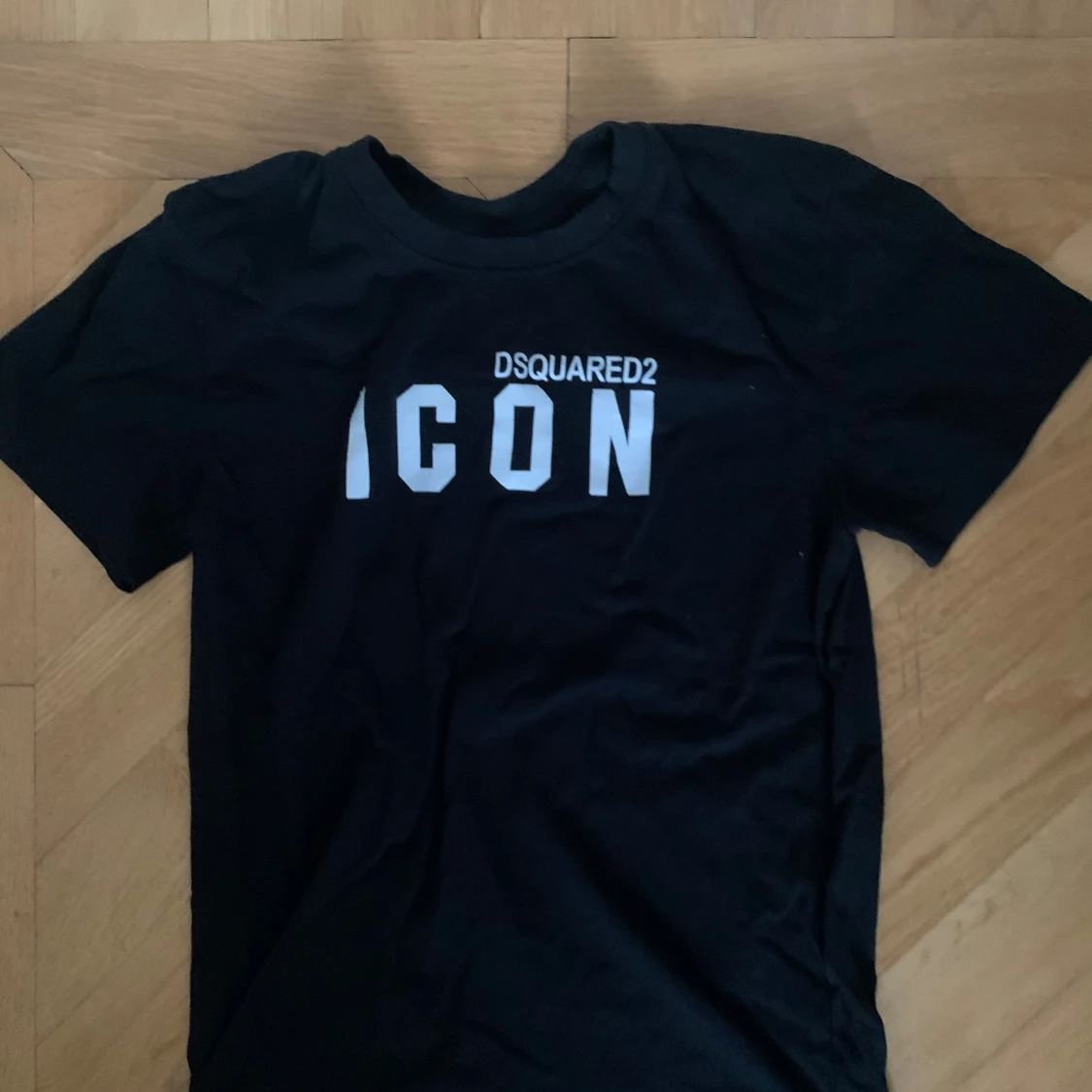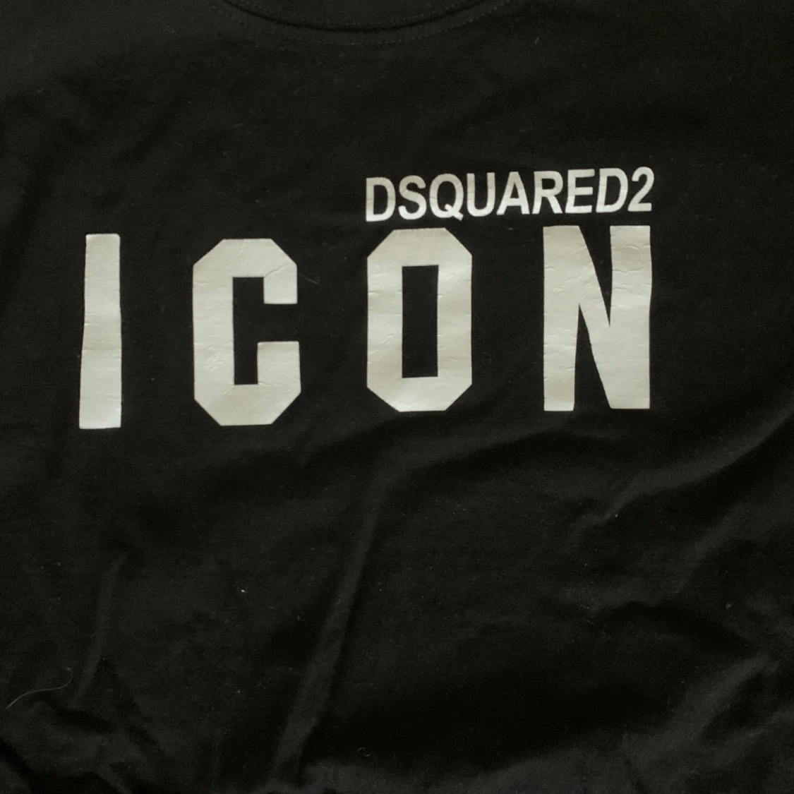 Svart t-shirt från Dsquared2 med stor vit 'ICON'-text och logga på bröstet.
