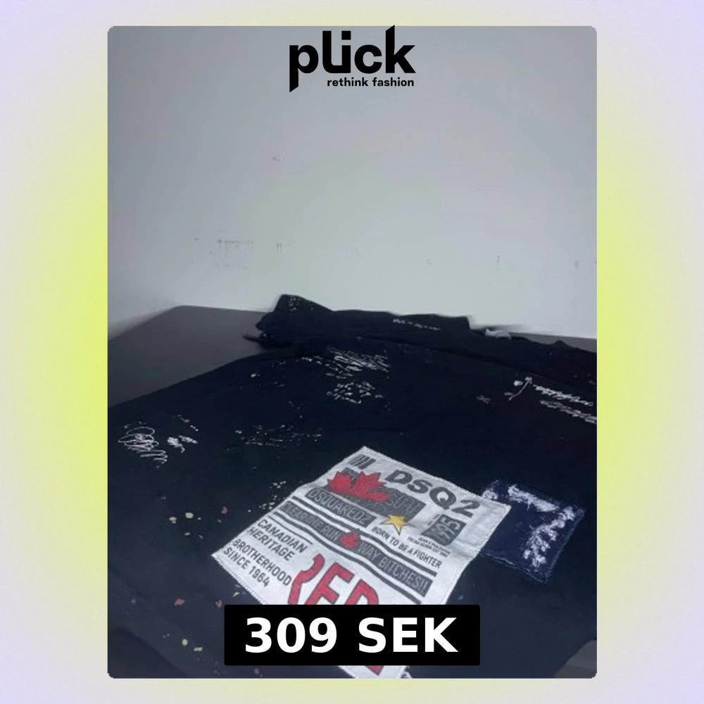 Cool svart t-shirt från DSQUARED2 med stor patch framtill, tryckta texter och färgstänk för en edgy look. T-shirten har korta ärmar och rund hals. Perfekt för dig som vill sticka ut med streetwear-vibe.