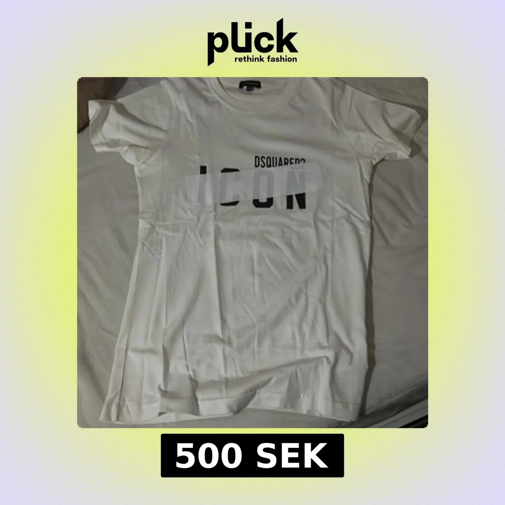 Snygg vit t-shirt från Dsquared2 i storlek S med trycket 'ICON' i svart på bröstet. Klassisk rund hals och korta ärmar. Tillverkad i mjuk bomull som känns skön mot huden. Perfekt för dig som gillar stilrena och trendiga plagg med statement-tryck.