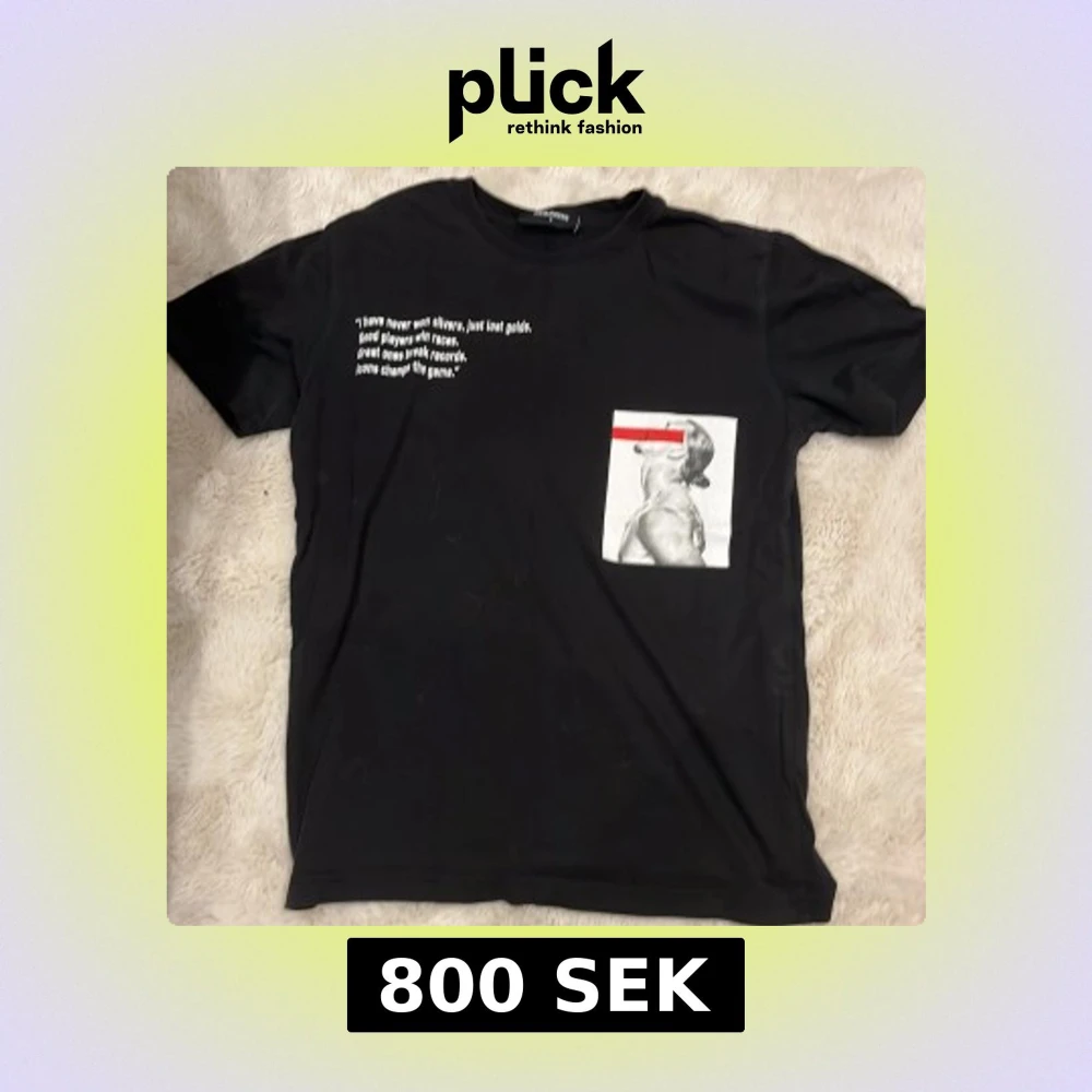 Svart t-shirt från Dsquared2 med vit text på bröstet och en stor grafisk print med röd detalj på framsidan. T-shirten har rund hals och är tillverkad i mjuk bomull. Perfekt för dig som gillar statement-plagg och streetstyle.