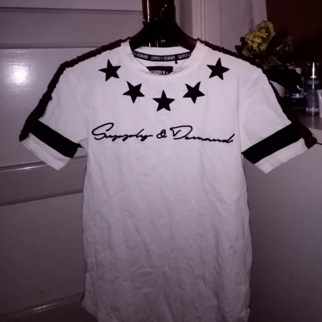Cool T-shirt från supply & demand! Storlek xxs men det är herrmodell, passar mig som är 160 och brukar ha S💁♀️ Inga skavanker:) nypris 250 frakt tillkommer, eller möts upp i Umeå!