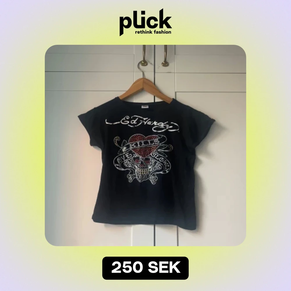 Säljer min edhardy tröja i storlek M men skulle säga att den är ganska liten i storleken och passar som en S/Xs. Den är i bra skick, några diamanter har lossnat men det syns knappt! 💓