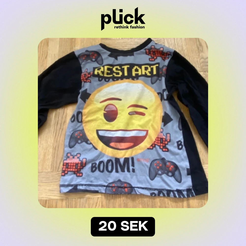 Barntröja för 8-9 år med en smiley på, okej skick men ett litet hål på ena axeln.