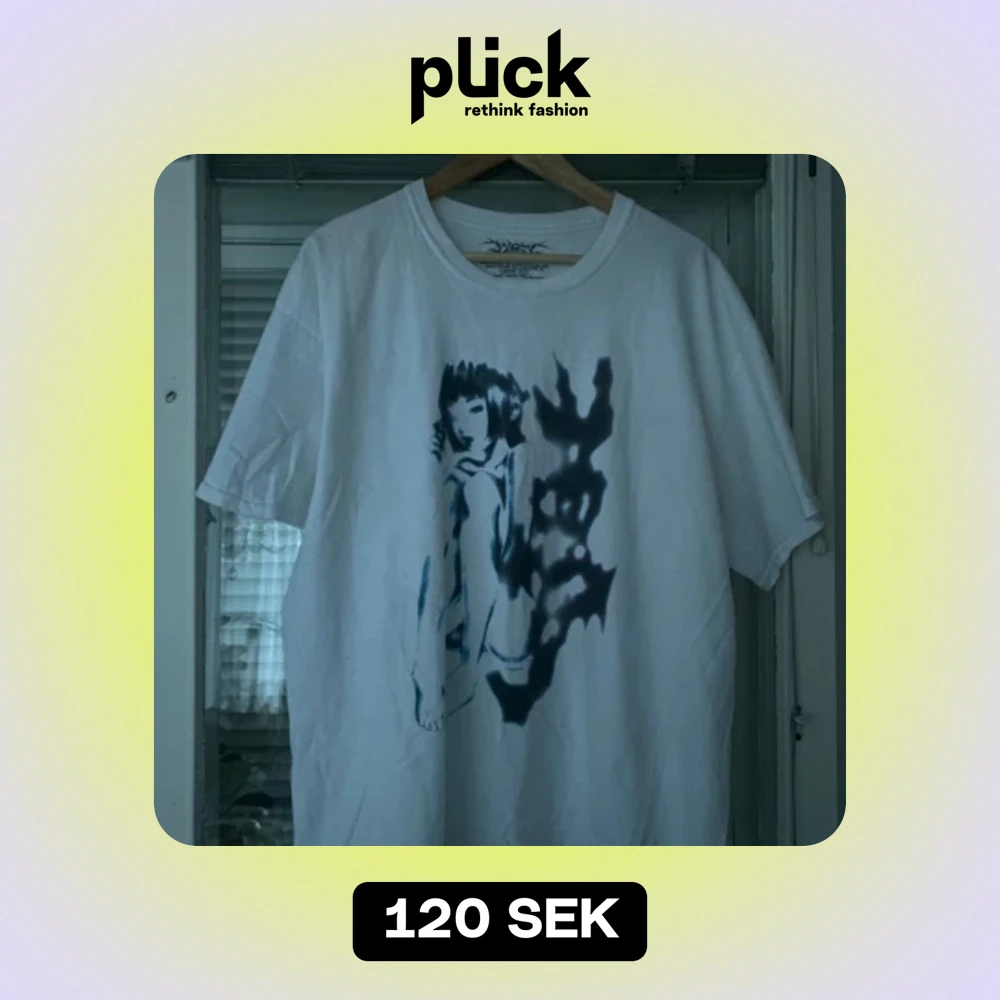 Vit tshirt med tryck från @onlycurse på ig, använd fåtal ggr 8/10 cond tvättad 2 ggr men inga flaws XL strl, lite oversized