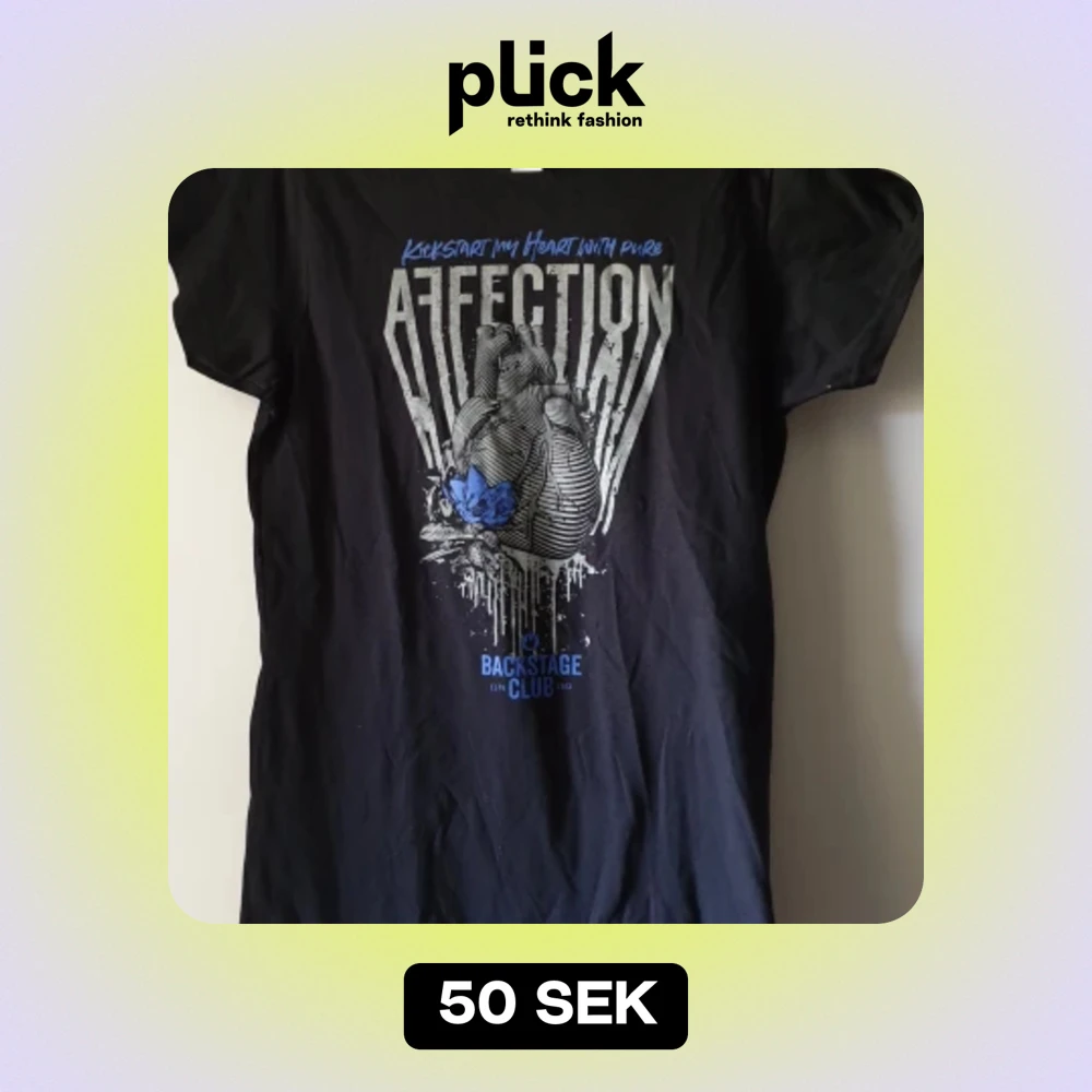 T-shirt Storlek: uppskattas som en S eller liten M. (Står L på lappen, men väldigt liten I storlek). Skick: max använda en gång Färg: svart med lila detaljer Märke: EMP Backstage club Längd: ca 67cm, axelbredd: ca 35cm