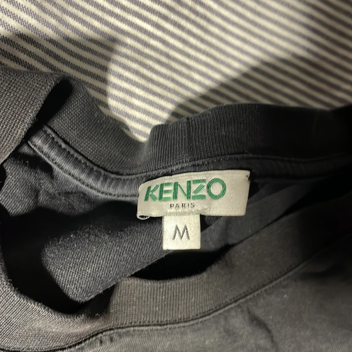 Svart t-shirt från Kenzo med ikoniskt tigertryck i flera färger och texten 'Paris' framtill. Klassisk passform och rund halsringning, perfekt för dig som vill sticka ut med en statement-piece.