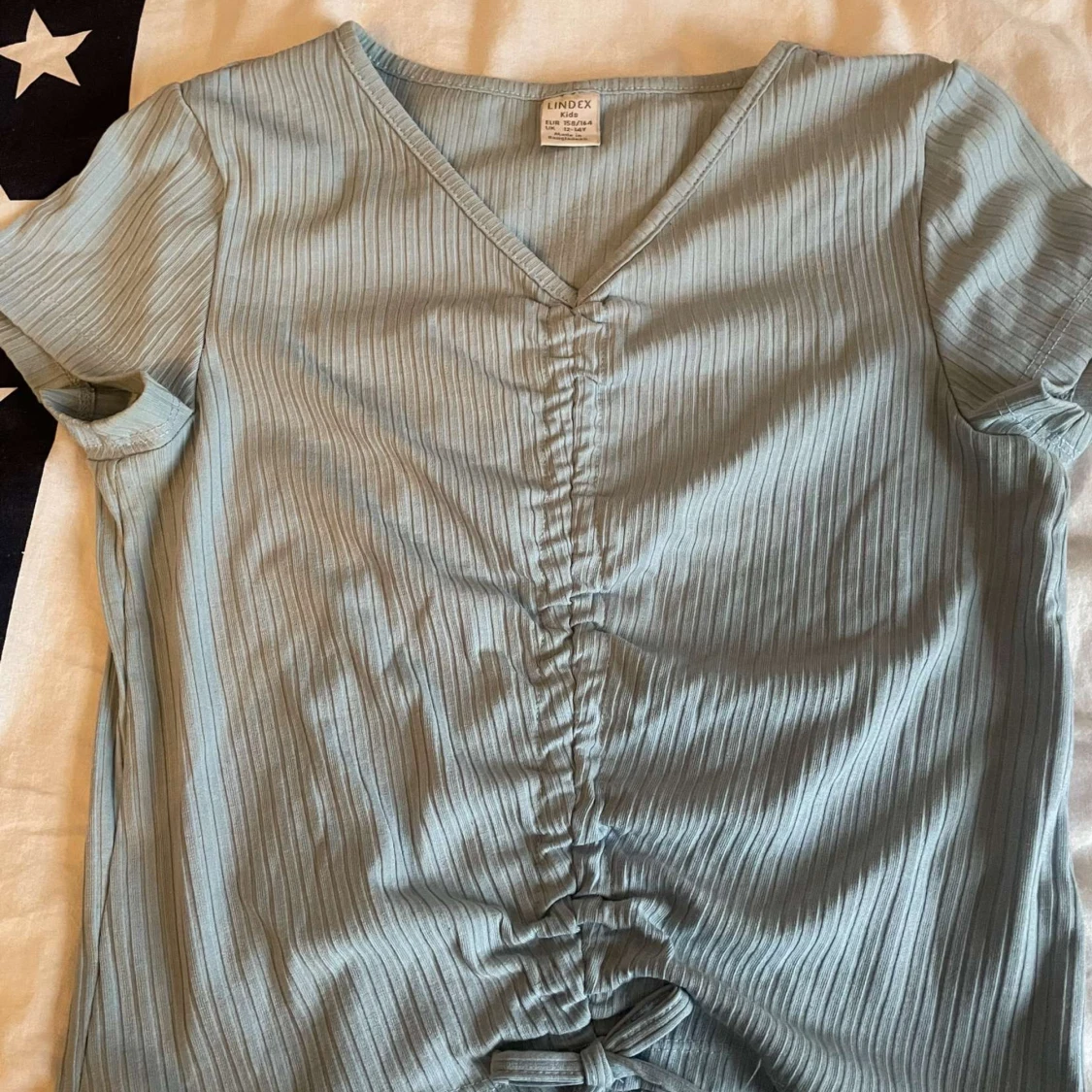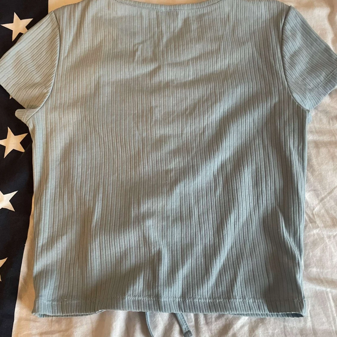 En ljus blå magtröja med en rosett nederst. Använd 2 gånger och nytt skick