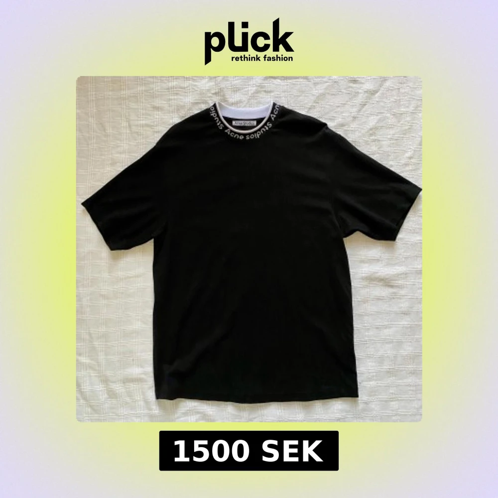 Svart t-shirt från Acne Studios med vit och svart ribbad krage med loggan invävd runt halsen. T-shirten är kortärmad och har en clean, stilren look. Materialet är en mix av viskos, polyamid och elastan för en mjuk och stretchig känsla. Använd endast en gång. Nypris: 2700kr