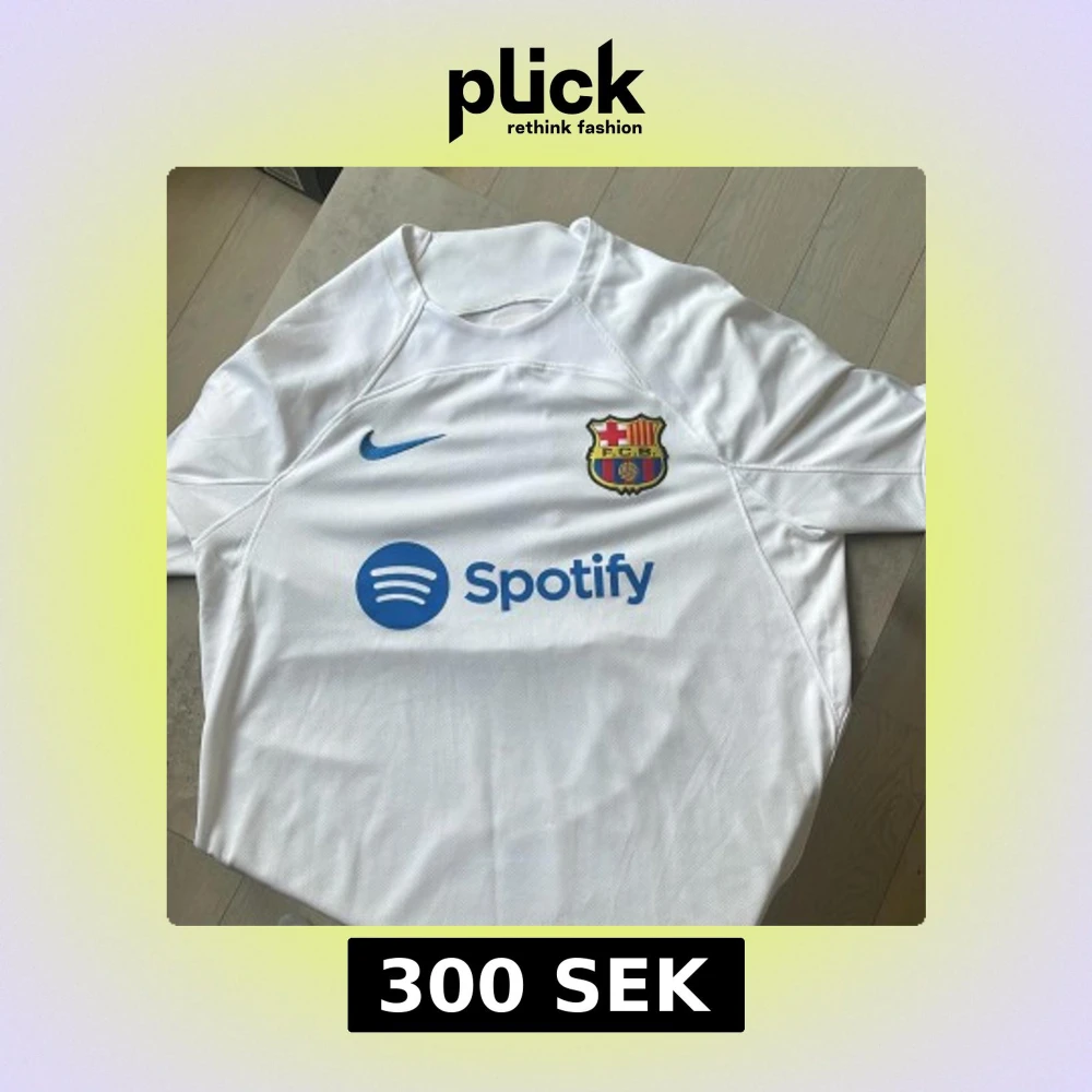 Säljer en vit FC Barcelona matchtröja från Nike med blå detaljer, Spotify-logga och klubbmärke på bröstet. På ryggen står João Cancelo och nummer 2 i blått. Ärmarna har UEFA Foundation-märke och Champions League-märke. Materialet är lätt och andas, perfekt för fotboll. 10/10 oanvänd, fotbollskollektion bild 5!