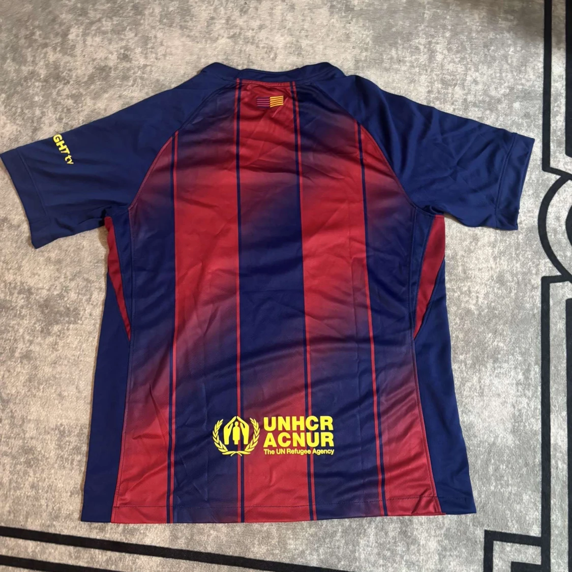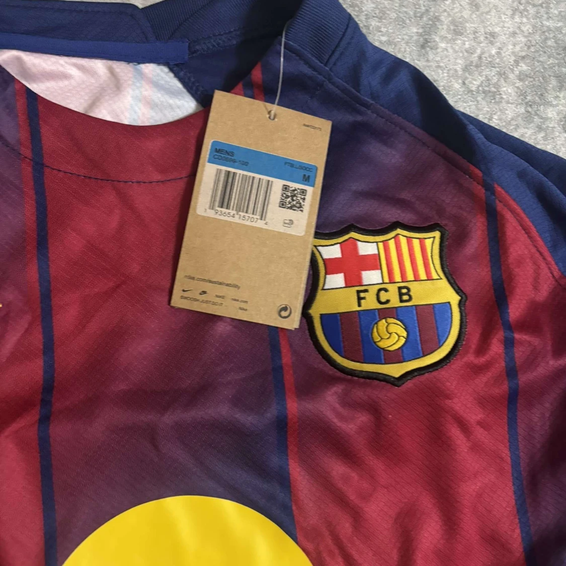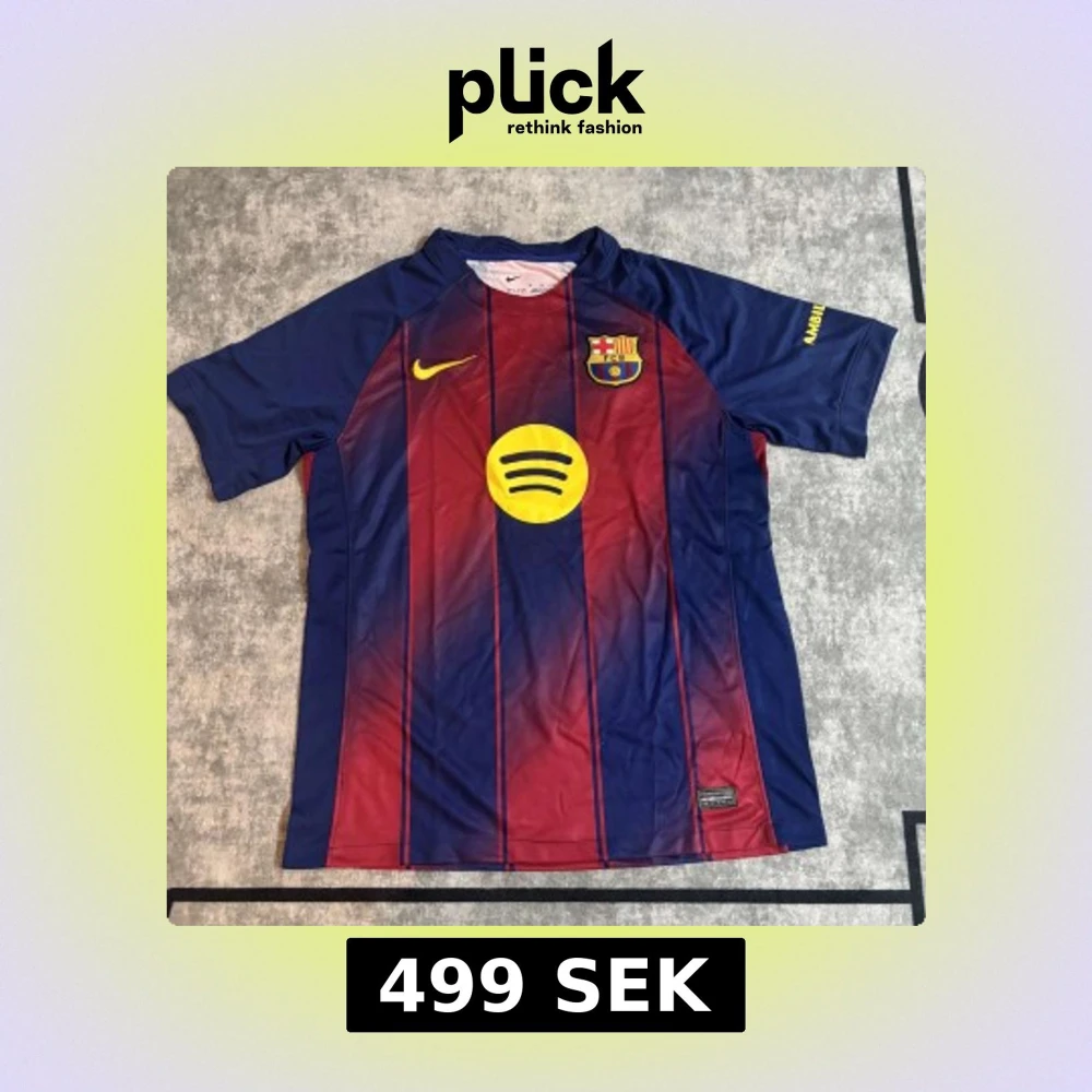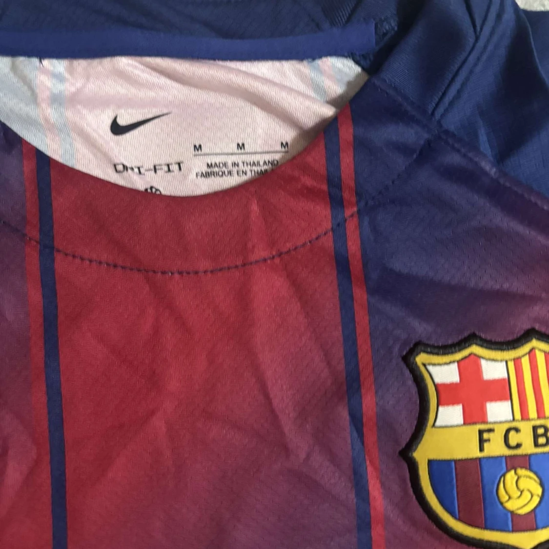 Säljer en officiell FC Barcelona matchtröja från Nike i storlek M. Tröjan har klassiska blå och röda vertikala ränder, klubbmärke på bröstet, gul Nike-logga och sponsortryck från Spotify. Tillverkad i lätt och ventilerande Dri-FIT-material.