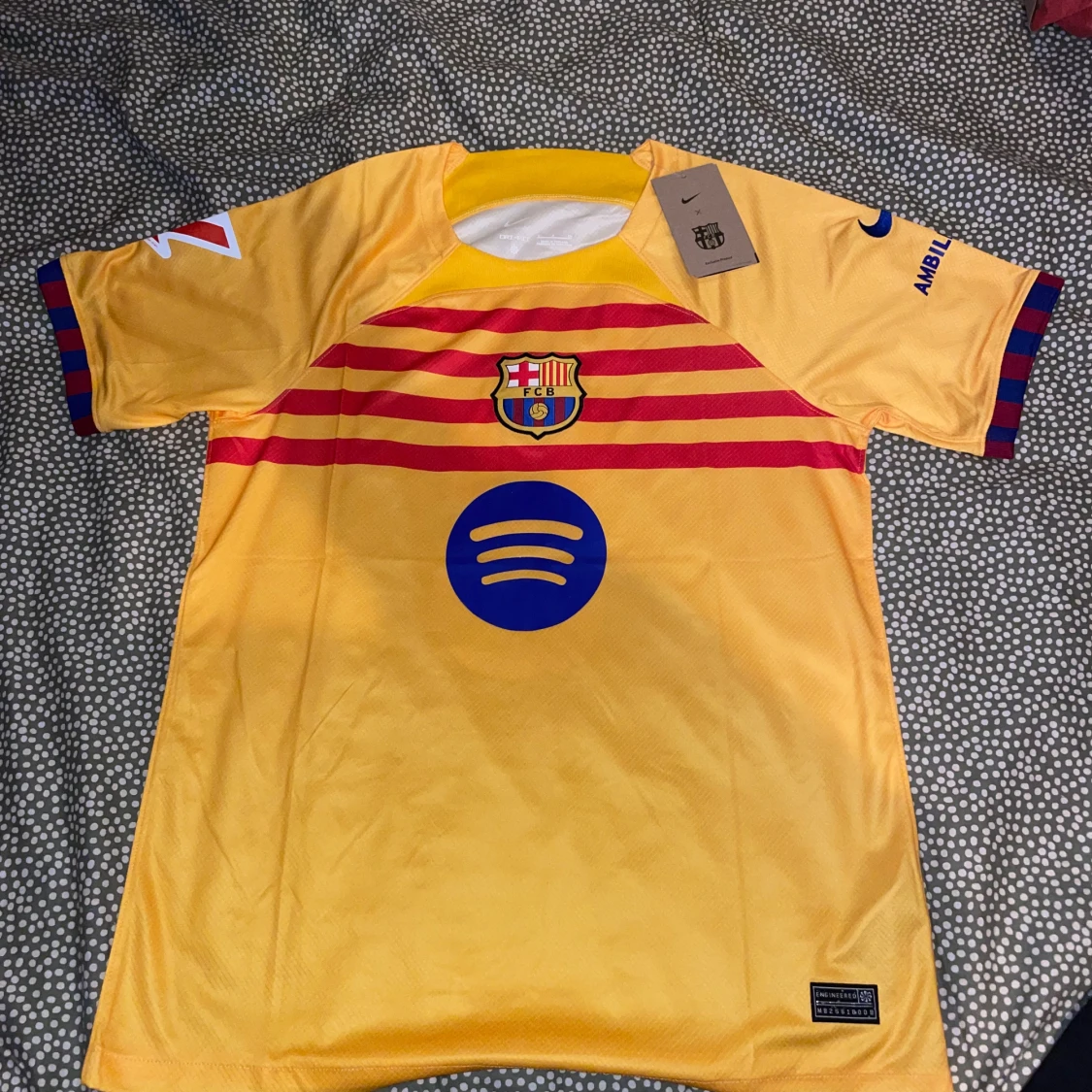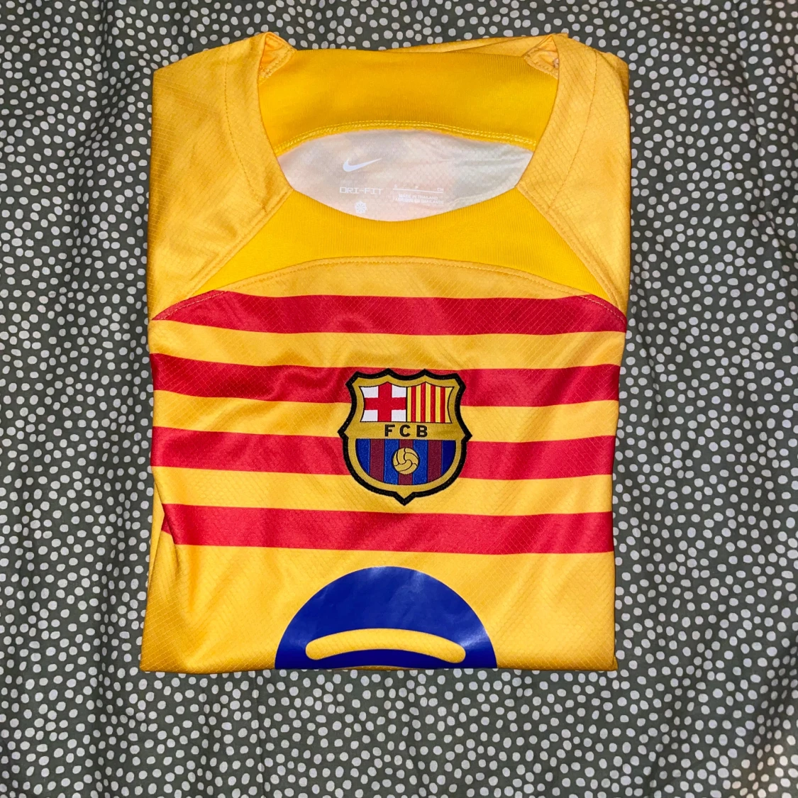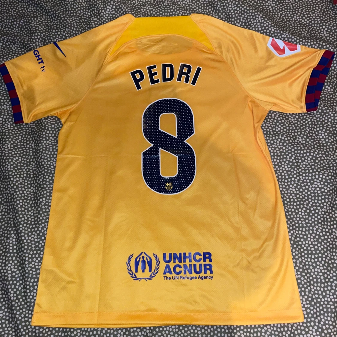 Säljer en gul FC Barcelona fotbollströja från Nike, tröjan är oanvänd då jag vann tröjan i en tävling. Namnet 'Pedri' och nummer 8 är tryckt på baksidan.