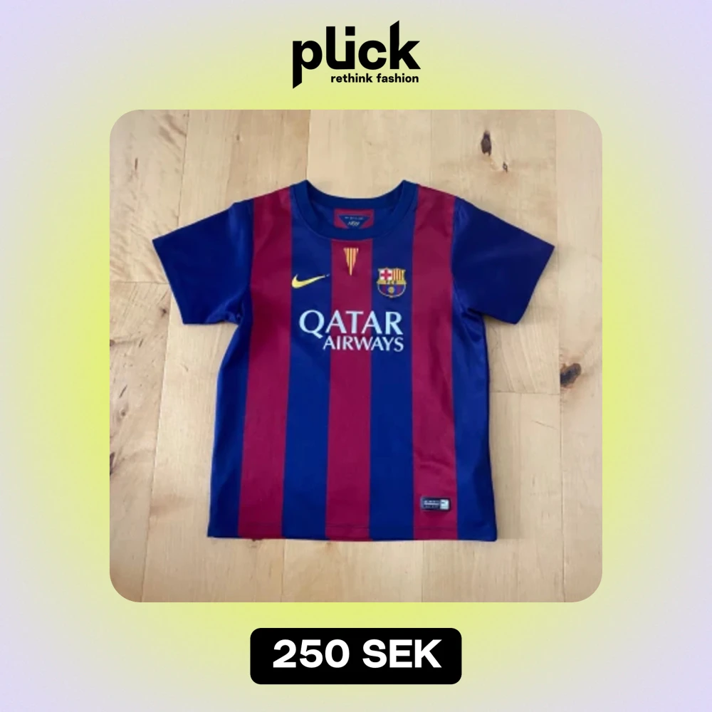 Magisk FC Barcelona baby tee ⚽️ Nike-loggan har ett knappt märkbart slitage (se bild) men i superbra skick i övrigt. Storlek 110/116 men passar en vuxen som när storlek XS/S 🪩