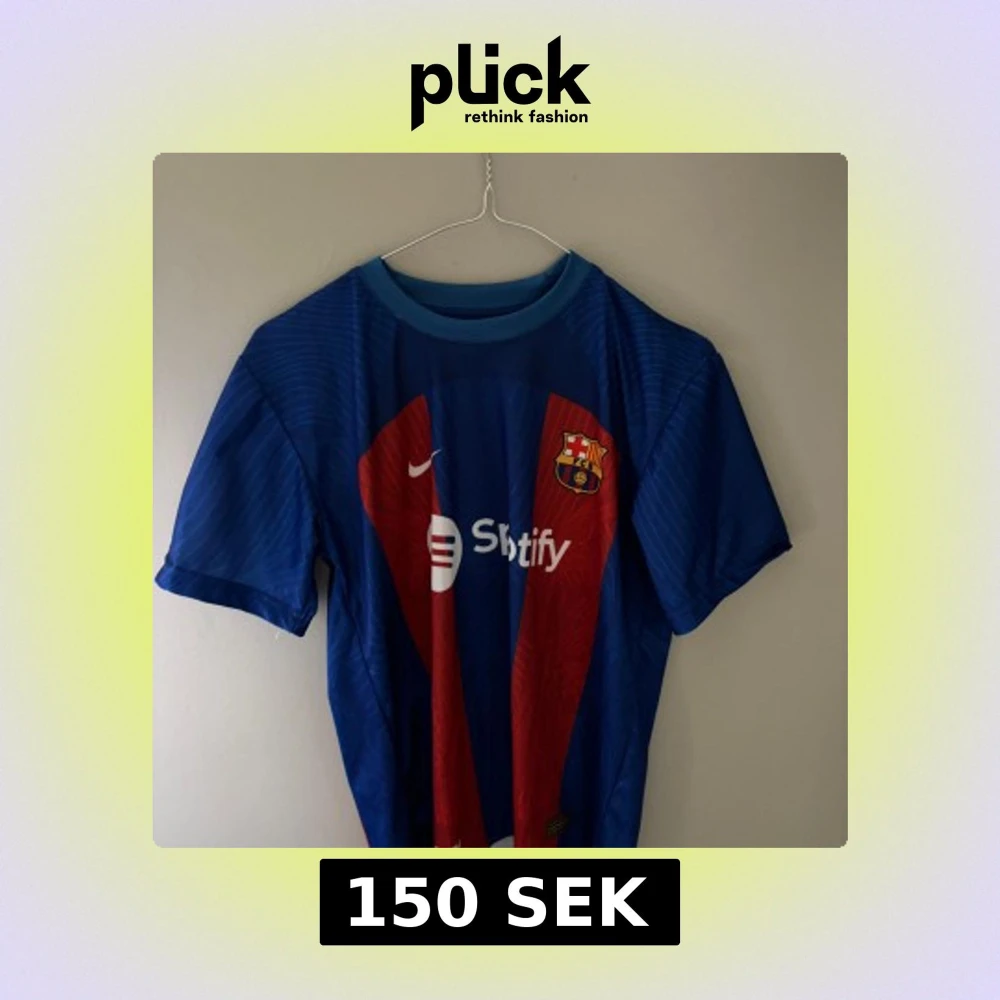 Säljer en FC Barcelona matchtröja från Nike med Lewandowski och nummer 9 på ryggen. Tröjan är blå med röda vertikala ränder, klubbmärke på bröstet och sponsorlogga framtill. Tillverkad i lätt och ventilerande material, perfekt för fotboll eller supporterliv.