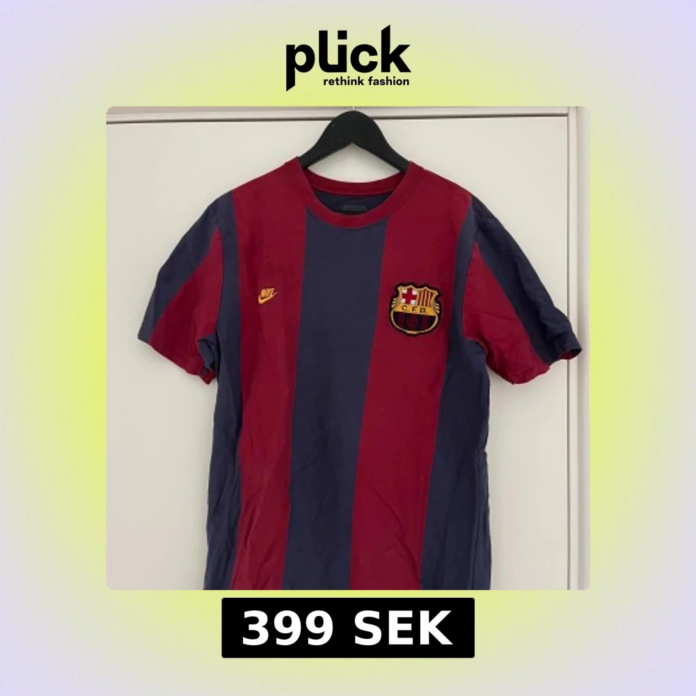 En klassisk retro och ganska sällsynt FC Barcelona fotbollströja från Nike. Tröjan är baggy, kortärmad modell och gjord av 100% bomull. Perfekt för dig som är 180-185 cm.