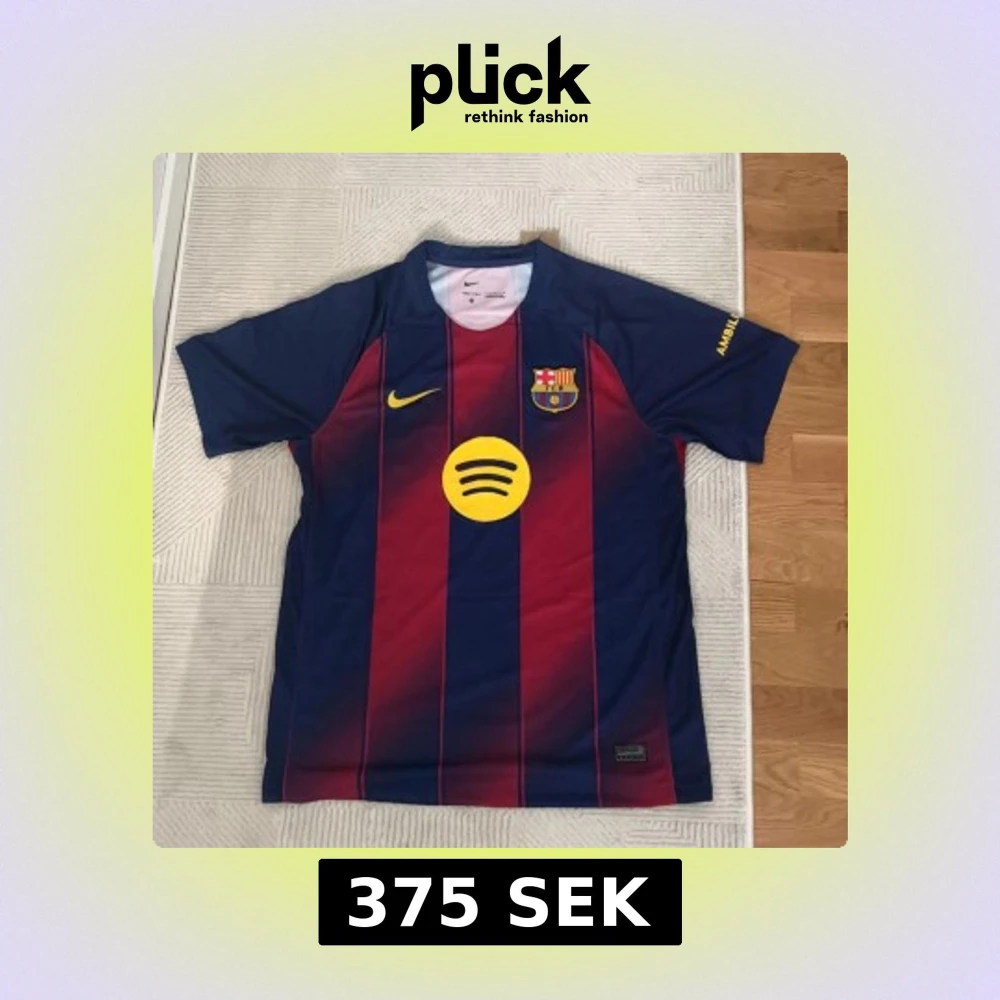 Säljer en FC Barcelona matchtröja med Raphinha 11 på ryggen. Tröjan är blå och röd med gula detaljer, klubbmärke och sponsorloggor. Klassisk randig design i lätt och ventilerande material, perfekt för dig som älskar Barca.