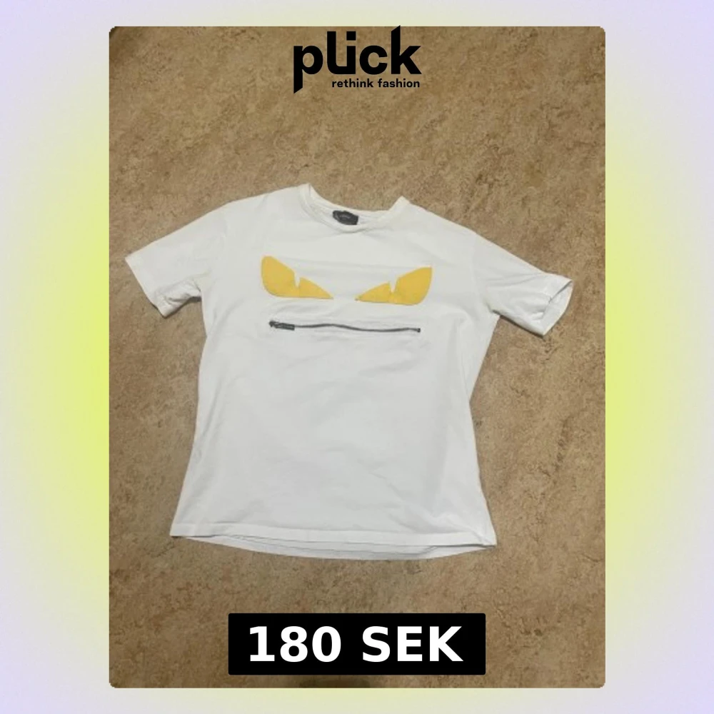 Säljer en vit t-shirt från Fendi med coola gula applikationer som ser ut som ögon och en silverfärgad dragkedja på bröstet. T-shirten har rund hals och korta ärmar, tillverkad i mjuk bomull. Perfekt för dig som gillar statement-plagg och designer. #fendi #fenditshirt #designer #designertshirt #lyx #luxury #streetwear #highend #fashion #mode #stil #plick #plicksale #plickfynd #secondhand #vintage #sverige #sweden #ungdomsmode