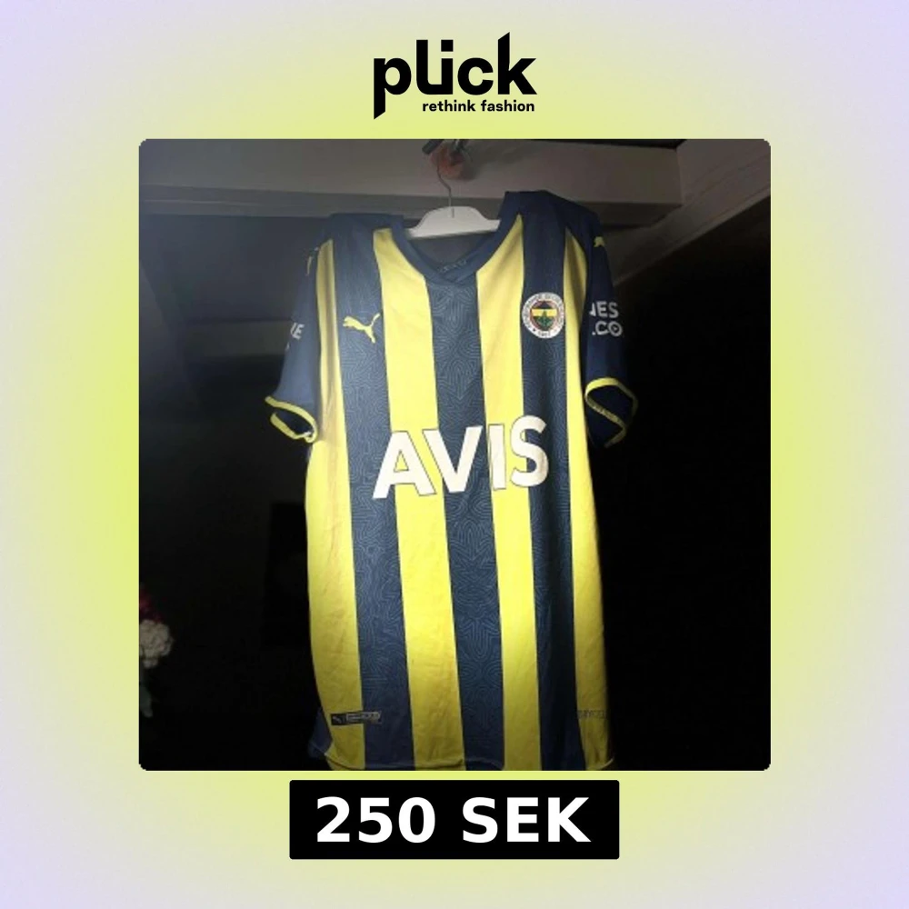 Säljer en snygg gul och marinblå randig fotbollströja från Puma. Tröjan har korta ärmar och klubbmärke på bröstet. Perfekt för fotbollsfans som vill visa sitt stöd med stil! 🟡🔵