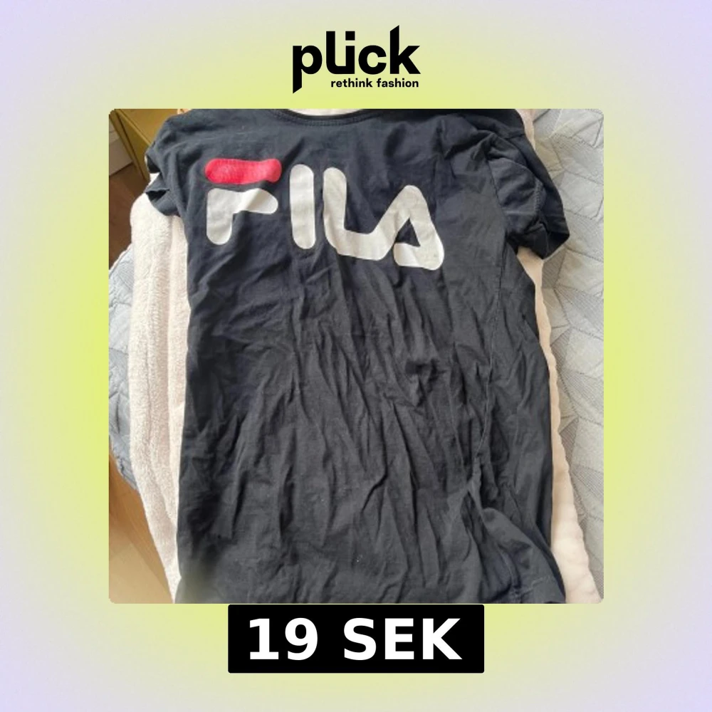 Svart t-shirt från FILA i storlek M med stor vit och röd logga på bröstet. Klassisk rund hals och korta ärmar. Mjuk och skön bomullskvalitet som passar perfekt till jeans eller shorts. Enkel och sportig stil med loose passform.