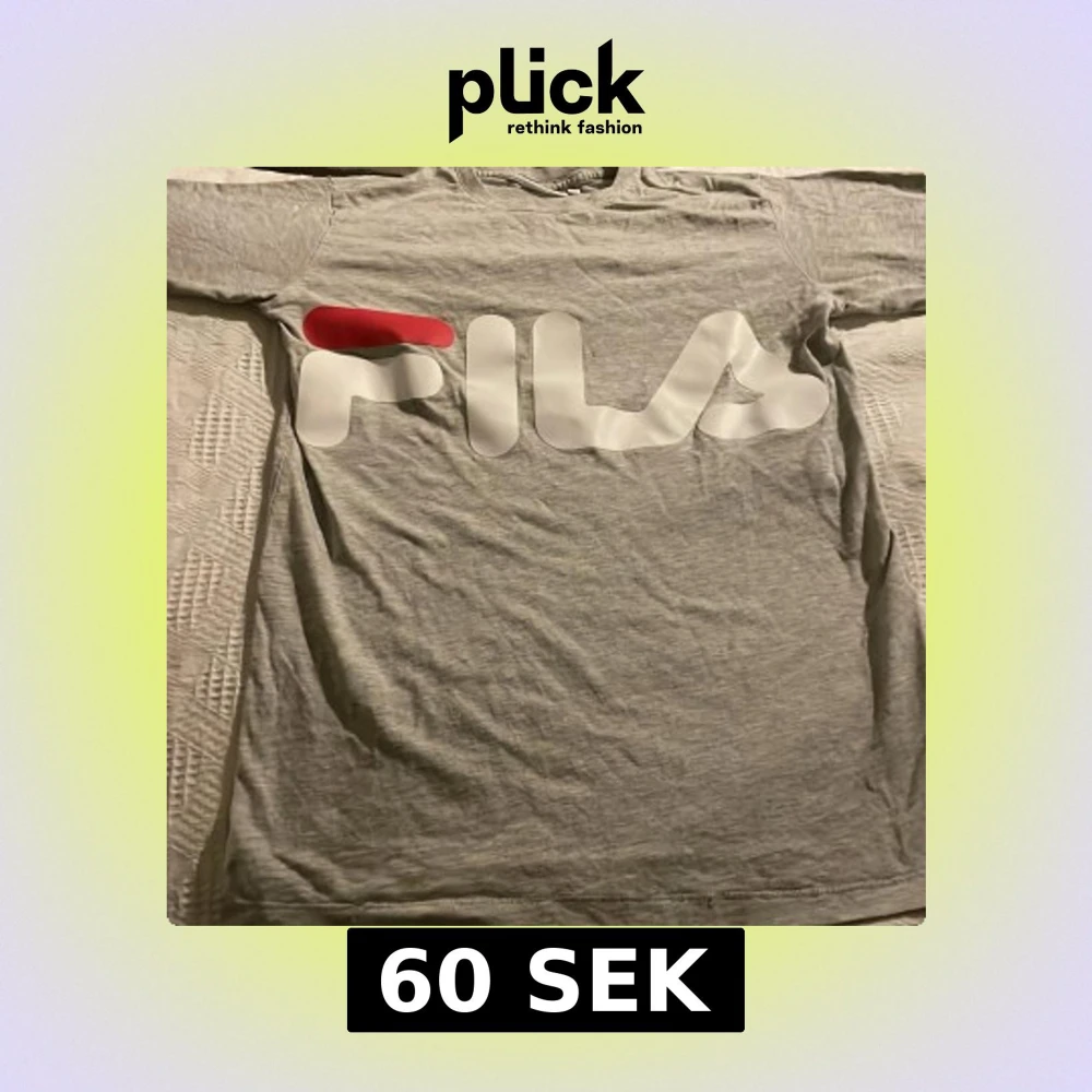 Snygg grå t-shirt från FILA i storlek XS med stor vit och röd logga framtill. Klassisk rund hals och korta ärmar. Tillverkad i mjuk bomull som känns skön mot huden. Perfekt för dig som gillar sportiga och stilrena plagg.