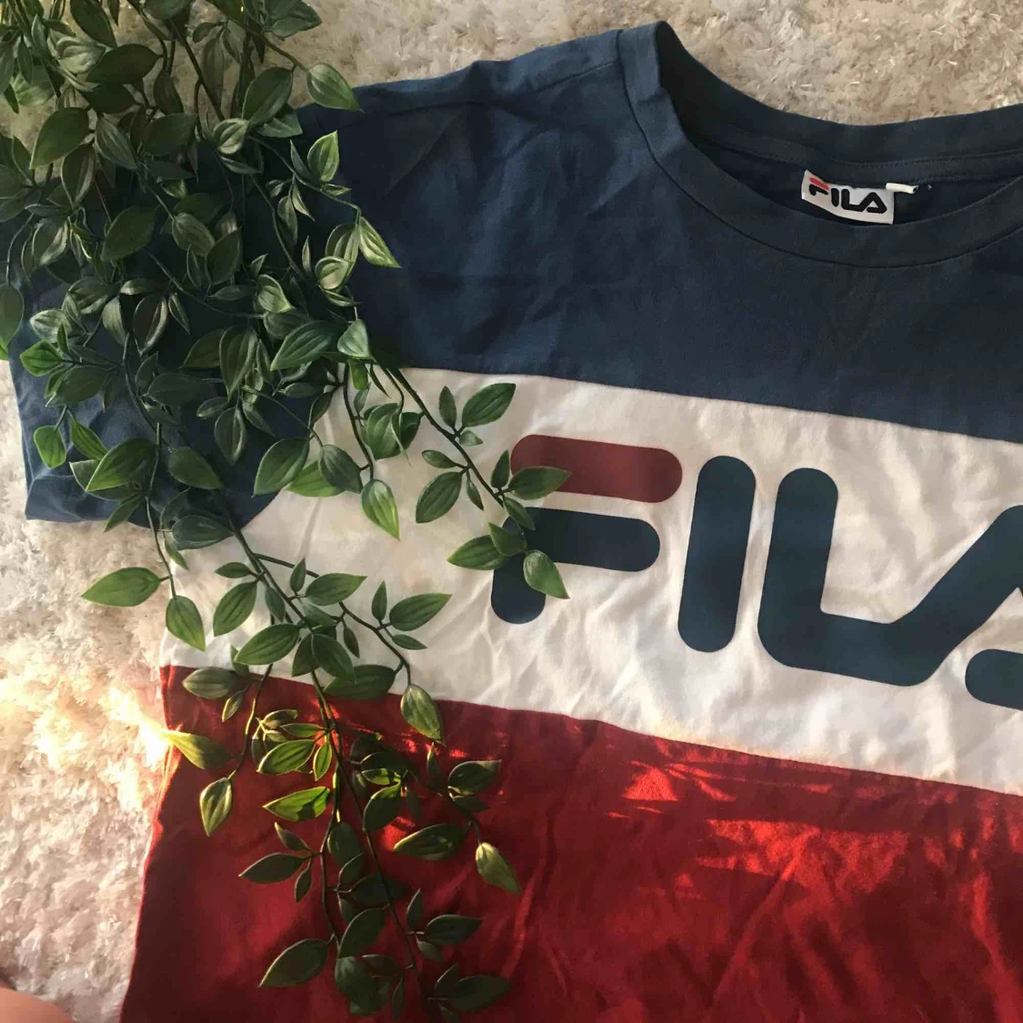 Fila t-shirt med jordnära färger och en liten retro/vintage-vibe! Sparsamt använd, bara någon gång då jag är lång och tröjan är inte i den längd jag behövt. Passar allt från XS-M beroende på hur man vill att den sitter. Frakt tillkommer💋
