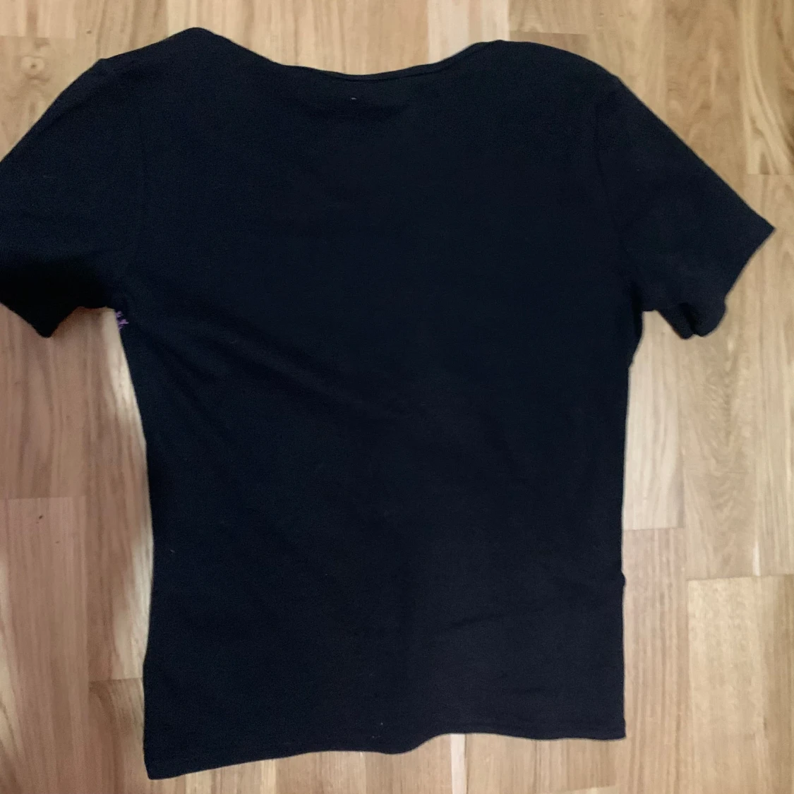 tröjan är i storleken L men passar mer som en M tröjan har nästan inga spår av användning förutom att trycket på tröjan är lite förstört (bild 2) men inget som märks super mycket