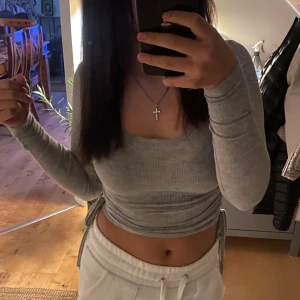Säljer min gråa tröja me fina band! Använd 1 gång
