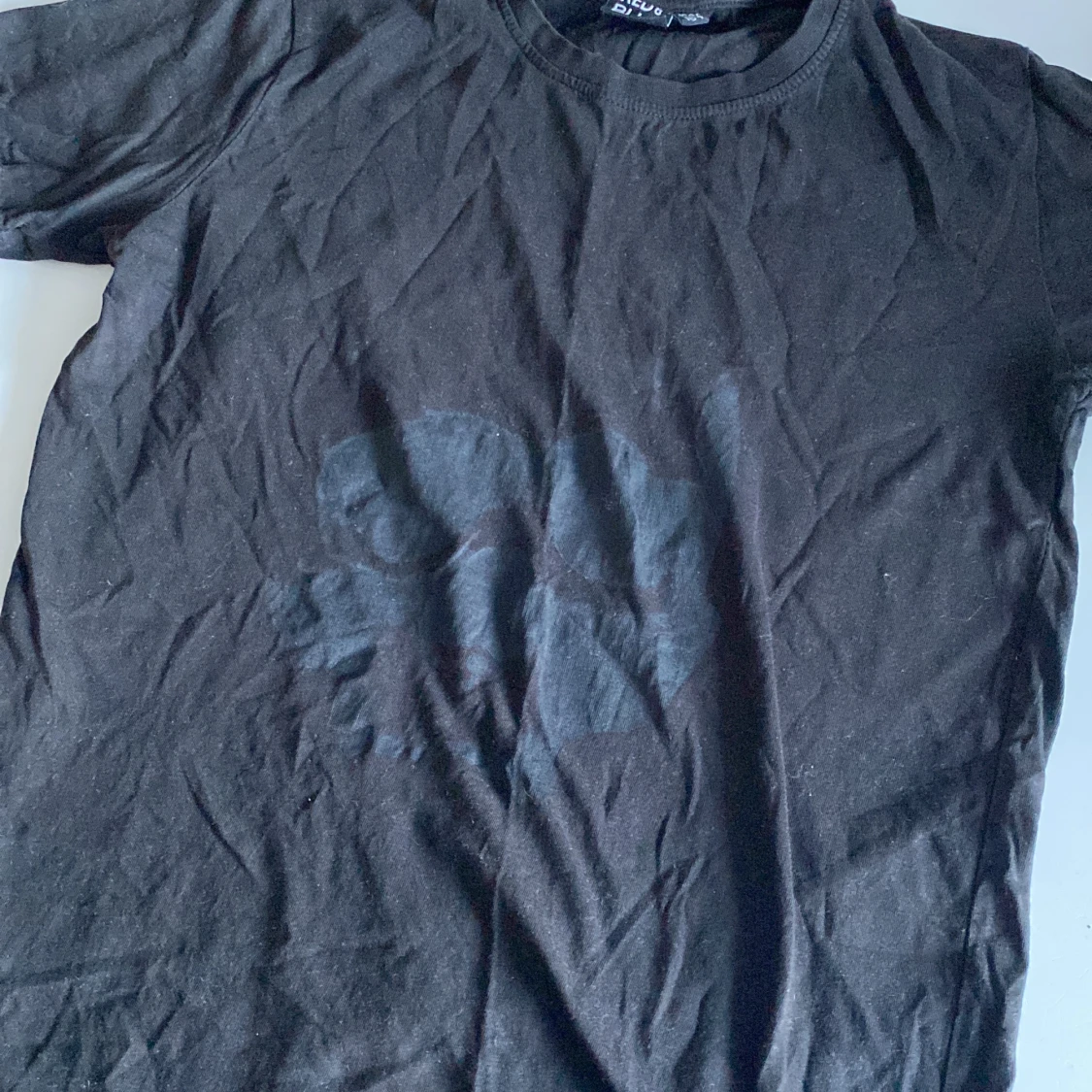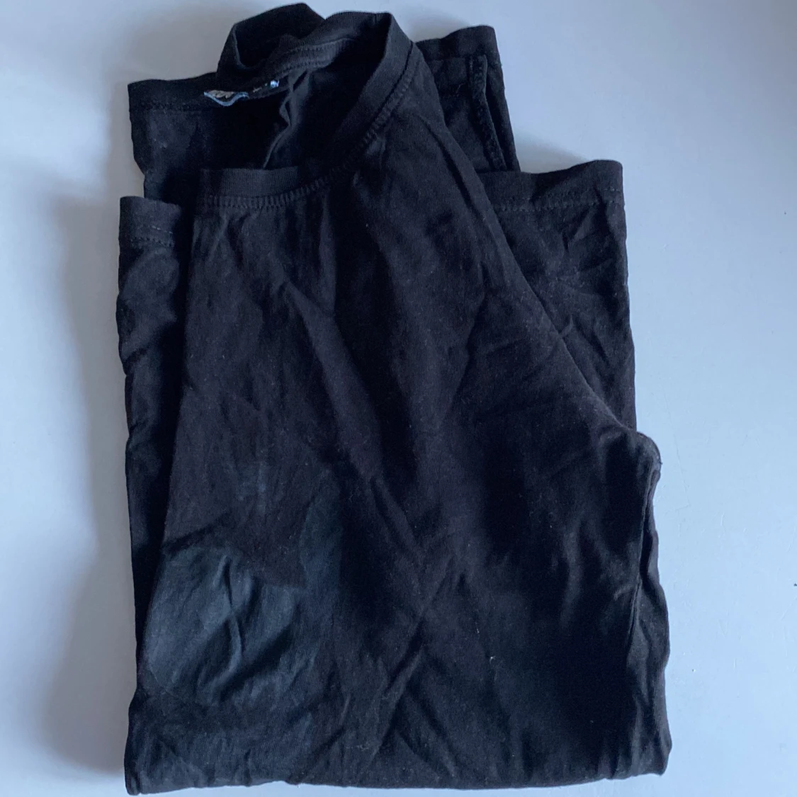 Svart fin T-shirt. Något längre bak. Diskret mönster fram stl 158/164