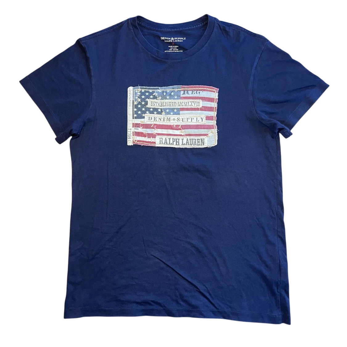 Riktigt fet marinblå t-shirt från Ralph Lauren Denim & Supply. Storleken är small men skulle säga att den passar medium. Dm för mått, öppen för bud.